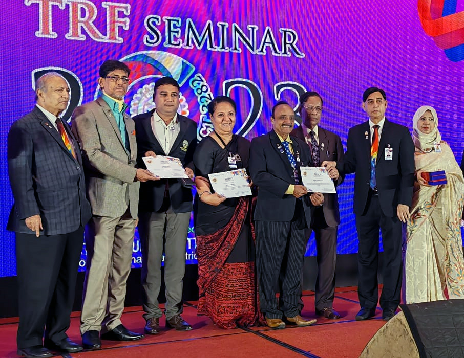 গত ২৫ নভেম্বর, শনিবার সকালে চট্টগ্রাম রেডিসন ব্লু’তে অনুষ্ঠিত দ্য রোটারি ফাউন্ডেশন সেমিনার ২০২৩-২৪ তাঁদের হাতে পিএইচএফ সার্টিফিকেট তুলে দেন রোটারি ৩২৮২ জেলা গভর্নর ইঞ্জিনিয়ার মো. মতিউর রহমান পিএইচএফ বি এমডি। এসময় অন্য অতিথিদের মধ্যে মঞ্চে উপস্থিত ছিলেন পিডিজি আব্দুল আহাদ পিএইচএফ বি এমডি, পিডিজি দাতো ড. মীর আনিসুজ্জামান বি এ কে এস, পিডিজি ড. মঞ্জুরুল হক চৌধুরী এমপিএইচএফ এমসি, ডিএফএল পিপি সামিনা ইসলাম, চট্টগ্রামের প্রথম ক্লিনিক্যাল পুষ্টিবিদ ক্লাব ডিরেক্টর কমিউনিটি সার্ভিস রোটারিয়ান হাসিনা আক্তার লিপি, চার্টার প্রেসিডেন্ট এ.কে.এম সাইদুল ইসলাম বাবু প্রমুখ।