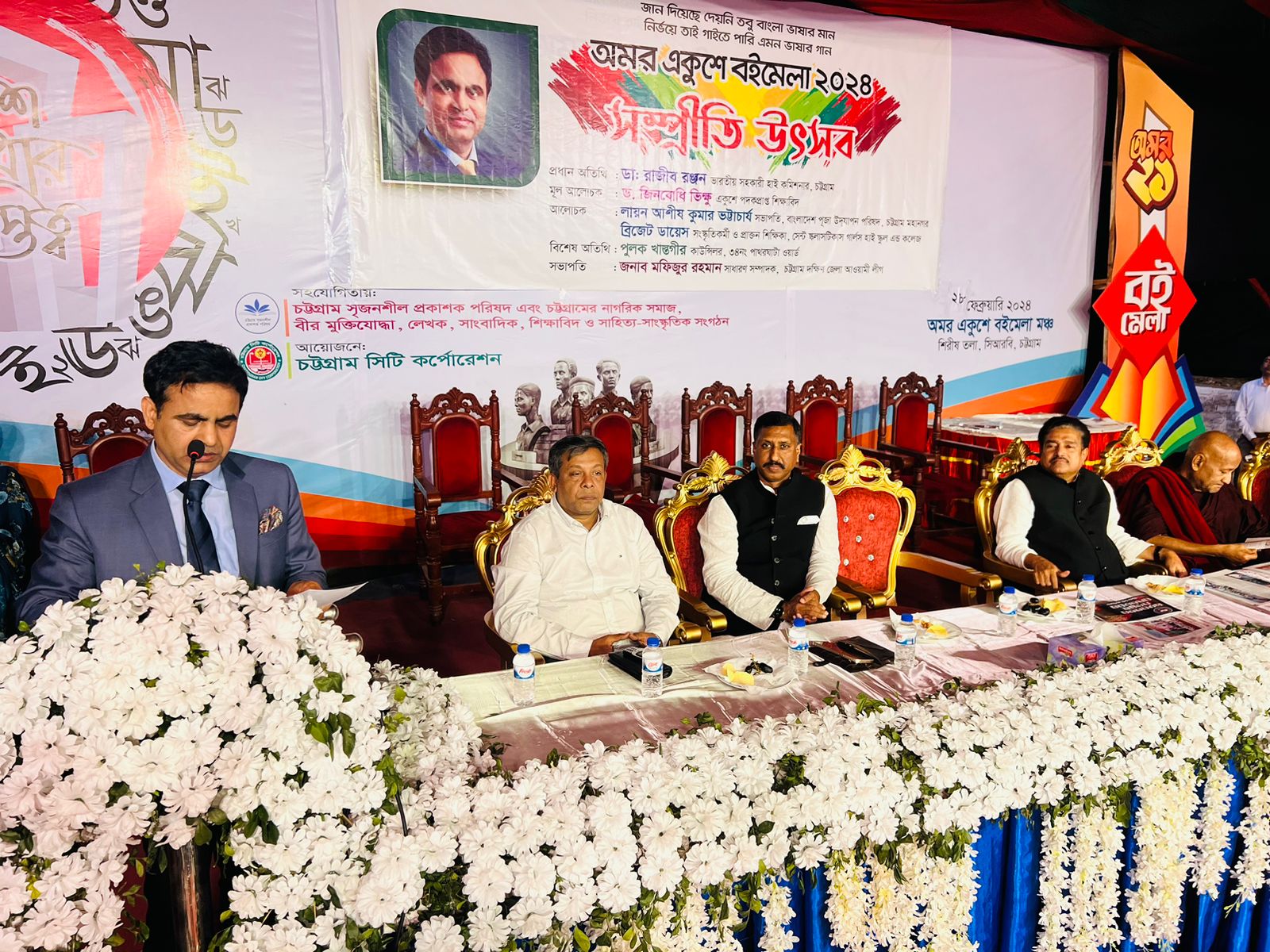 আজ বুধবার বিকালে চট্টগ্রাম সিটি করপোরেশনের উদ্যোগে সৃজনশীল প্রকাশনা পরিষদ ও নাগরিক সমাজের সহযোগিতায় অমর একুশে বই মেলা মঞ্চে চট্টগ্রাম দ¶িণ জেলা আওয়ামী লীগের সাধারণ সম্পাদক মোঃ মফিজুর রহমানের সভাপতিত্বে ও রুমিলা বড়ুয়ার সঞ্চালনায় প্রধান আলোচক একুশে পদকপ্রাপ্ত শিক্ষাবিদ প্রফেসর ড. জিনবোধি ভিক্ষু ও আলোচক হিসেবে বক্তব্য রাখেন কাউন্সিলর পুলক খাস্তগীর, চট্টগ্রাম মহানগর পূজা উদযাপন পরিষদের সভাপতি লায়ন আশীষ কুমার ভট্টাচার্য ও সংস্কৃতি কর্মী ব্রীজেট ডায়েস। আলোচনা সভা শেষে একক সঙ্গীত ও দলীয় নৃত্য পরিবেশন করেন শুক্লপাল কণিকা, ঐশী , নিশা চক্রবর্তী,জাহেদ হোসেন, আর্য সঙ্গীত, মিতালী সঙ্গীত, ওড়িশা এন্ড টেগোর ডান্স একাডেমি ও মুভমেন্ট সেন্টার প্রমা। আগামীকাল বৃহস্পতিবার বিকাল ৪.৩০টায় অমর একুশে বই মেলা মঞ্চে ছড়া উৎসব অনুষ্ঠিত হবে।