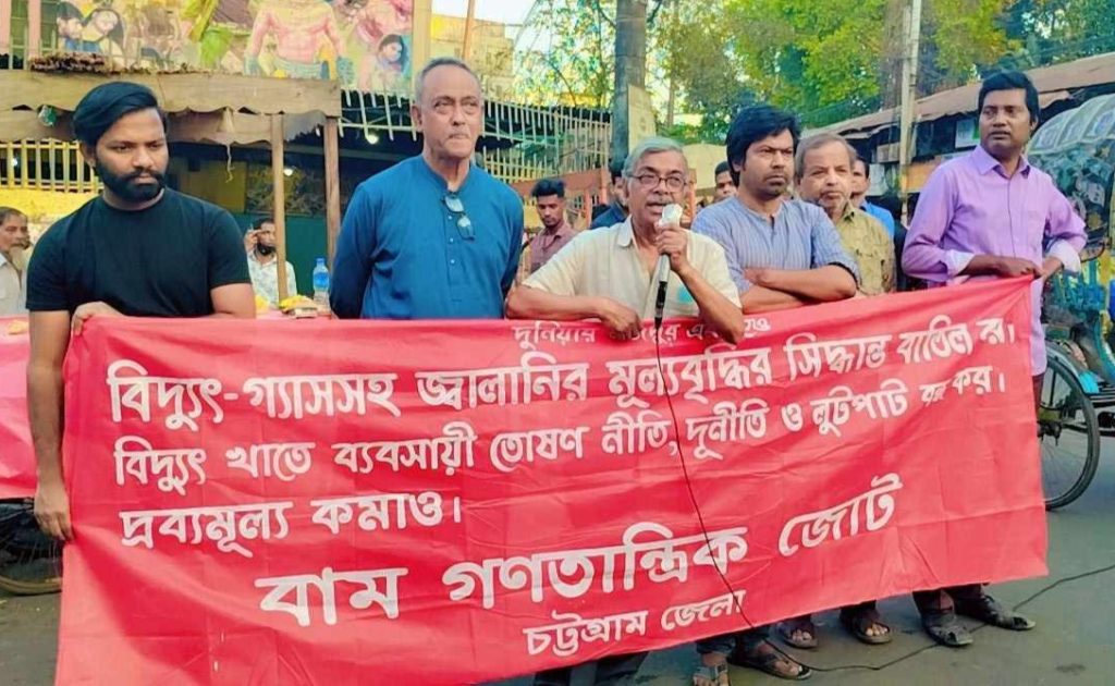 বিদ্যুৎ সহ জ্বালানির অযৌক্তিক ও গনবিরোধী মূল্যবৃদ্ধির সিদ্ধান্ত প্রত্যাহার এবং সরকারের ভুল নীতি দূর্নীতির প্রতিবাদ জানিয়ে চট্টগ্রাম নগরীতে বিক্ষোভ সমাবেশ করেছে বাম গণতান্ত্রিক জোট।