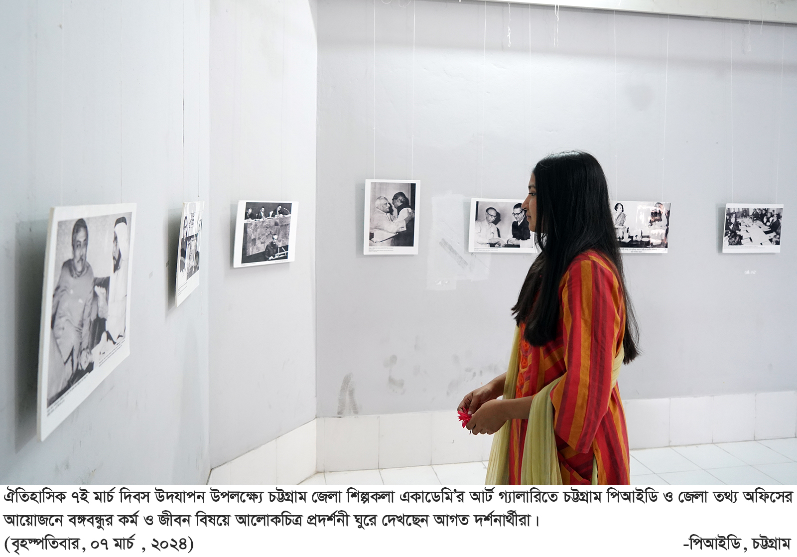 ঐতিহাসিক ৭ই মার্চ উদযাপন উপলক্ষ্যে আঞ্চলিক তথ্য অফিস পিআইডি চট্টগ্রাম ও জেলা তথ্য অফিসের আয়োজনে এবং জেলা প্রশাসনের সহযোগীতায় জেলা শিল্পকলা একাডেমির আর্ট গ্যালারিতে আলোকচিত্র প্রদর্শনী অনুষ্ঠিত হয়।