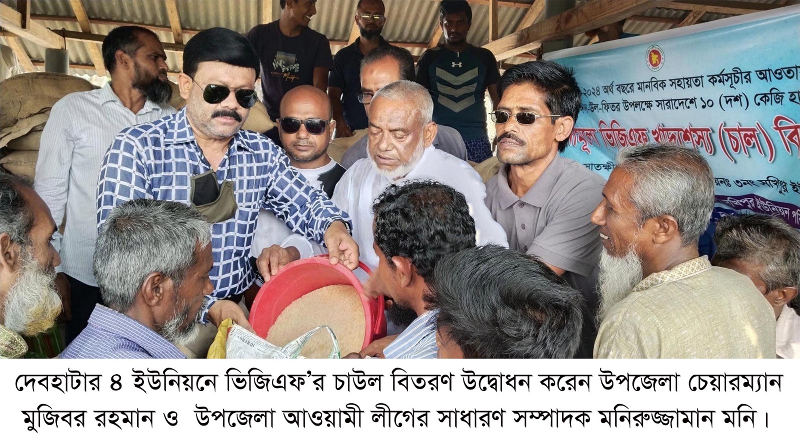 দেবহাটা উপজেলার কুলিয়া, সখিপুর, নওয়াপাড়া ও দেবহাটা সদর ইউনিয়নে পবিত্র ঈদ-উল-ফিতর উপলক্ষে প্রধানমন্ত্রীর ঈদ উপহার ভিজিএফ’র চাউল প্রদান করা হয়েছে। বুধবার সকাল থেকে স্ব স্ব ইউনিয়ন পরিষদে এ চাউল বিতরণ করা হয়। উপস্থিত থেকে এ কর্মসূচির উদ্বোধন করেন উপজেলা চেয়ারম্যান ও উপজেলা আওয়ামী লীগের সভাপতি মুজিবর রহমান, উপজেলা আওয়ামী লীগের সাধারণ সম্পাদক মনিরুজ্জামান মনি। কুলিয়া ইউনিয়নে ৫৪১ জনকে এ চাউল প্রদান কালে উপস্থিত ছিলেন ইউপি সচিব ফারুক হোসেন, ইউপি সদস্য আব্দুল হান্নান, গোলাম রব্বানী, আবু সাঈদ, মোশারফ হোসেন, প্রেম কুমার, বিধান চন্দ্র সরকার, প্রভাষ চন্দ্র মন্ডল, ফতেমা খাতুন, শিরিনা রসুল, শ্যামলী রানী।