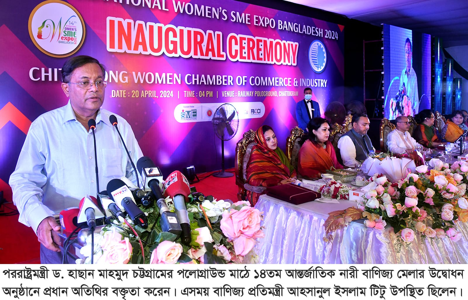 নারীদের উন্নয়নের জন্য কাজ করে চলেছেন শেখ হাসি ড. হাছান মাহমুদ বলেছেন, বাংলাদেশের প্রতিটি ঘরে ঘরে যদি নারীরা ছোট ছোট করে হস্তশিল্প গুলো তৈরি করে বিদেশে এক্সপোর্ট করতে পারে তাহলে এদেশ আরও উন্নয়নের সুফল বয়ে আনবে। শুধু সরকার করে দিবে এই মানসিকতা থাকলে দেশ কখনো এগিয়ে যায় না। সবাই মিলে দেশটাকে গড়তে হয়। দেশ গড়ার দায়িত্ব প্রত্যেকটি নাগরিকের। শনিবার (২০ এপ্রিল) সন্ধ্যায় চট্টগ্রাম নগরের পলোগ্রাউন্ড মাঠে চিটাগাং উইম্যান চেম্বার অব কমার্স অ্যান্ড ইন্ডাস্ট্রি'র আয়োজিত ১৪তম আন্তর্জাতিক উইম্যান এসএমই এক্সপো’র উদ্বোধনী অনুষ্ঠানে প্রধান অতিথির বক্তব্যে তিনি এসব কথা বলেন।