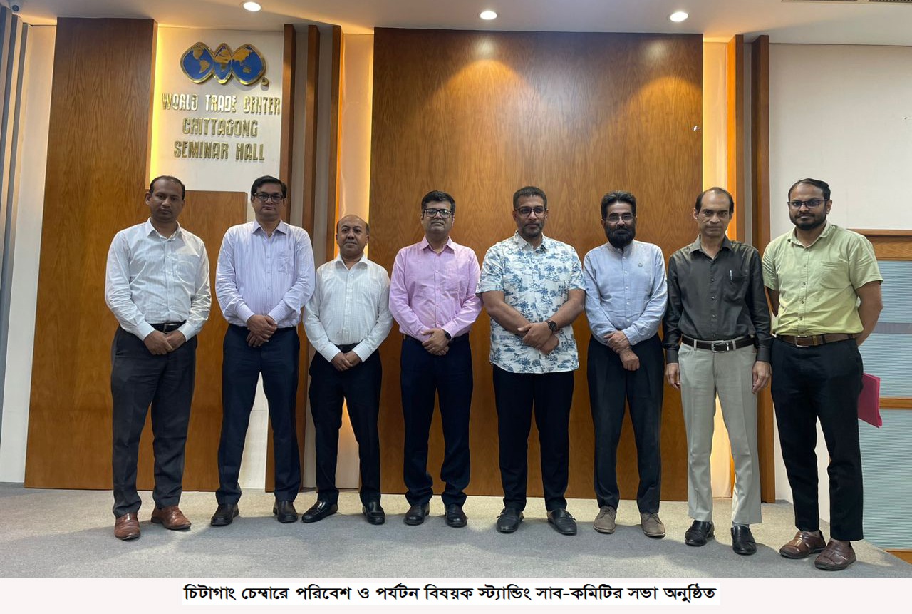 চিটাগাং চেম্বার অব কমার্স এন্ড ইন্ডাষ্ট্রি’র পরিবেশ ও পর্যটন বিষয়ক স্ট্যান্ডিং সাব-কমিটির প্রথম সভা ওয়ার্ল্ড ট্রেড সেন্টারে গতকাল রোববার অনুষ্ঠিত হয়। কমিটির ডিরেক্টর ইনচার্জ ও চেম্বার পরিচালক আখতার উদ্দিন মাহমুদ’র সভাপতিত্বে সদস্যবৃন্দ মোহাম্মদ হারমুজ শাহ বেলাল, হাসিব শাকুর ও মোঃ মোসাদ্দেক আহমেদ শরিফ এবং চেম্বার সেক্রেটারী ইনচার্জ প্রকৌশলী মোহাম্মদ ফারুক বক্তব্য রাখেন।