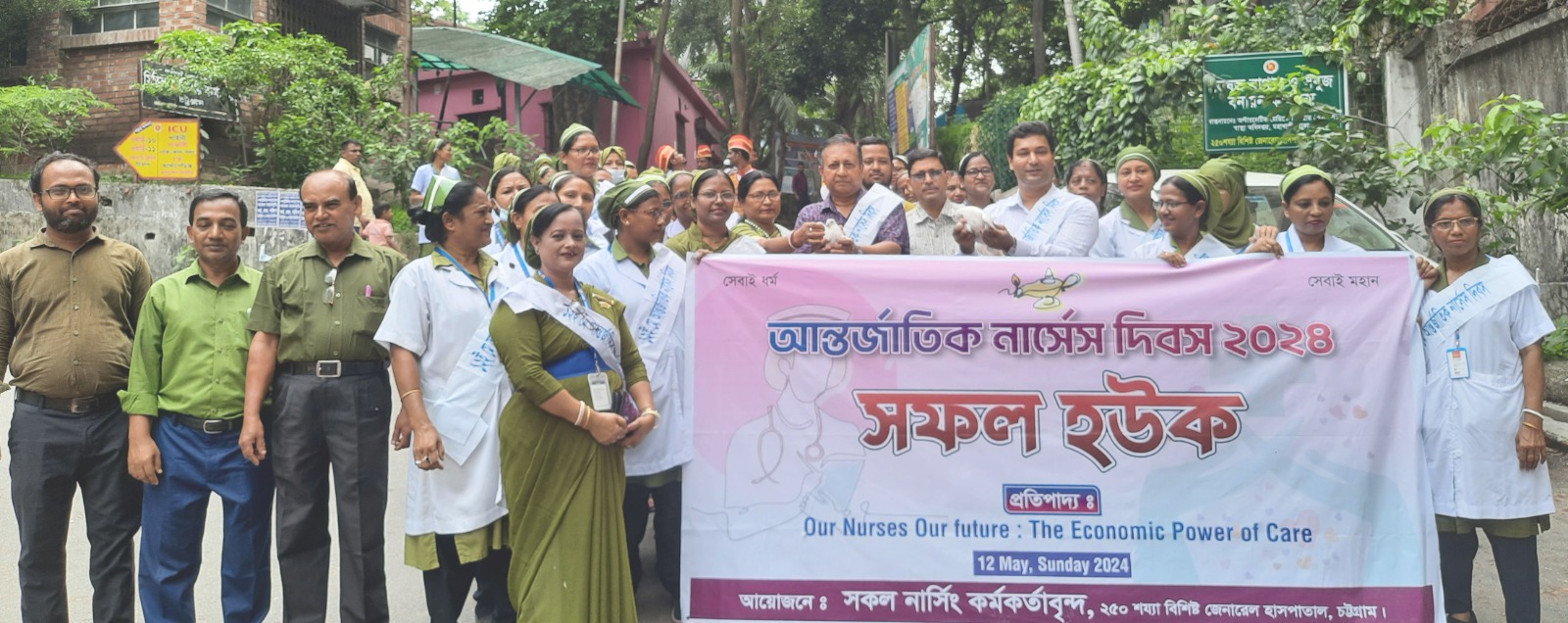 চট্টগ্রাম ২৫০ শয্যা বিশিষ্ট জেনারেল হাসপাতাল নার্সিং কর্মকর্তাদের উদ্যোগে আন্তর্জাতিক নার্সেস দিবস উপলক্ষে গতকাল রোববার সকালে বেলুন-শান্তির পায়রা উড়িয়ে দিবসটির উদ্বোধন, বর্ণাঢ্য র্যালি, আলোচনা সভা ও কেক কেটে আধুনিক নার্সিংয়ের প্রতিষ্ঠাতা ফ্লোরেন্স নাইটিংগেল’র ২০৪তম জন্মবার্ষিকী পালন করা হয়েছে। আন্তর্জাতিক নার্সেস দিবসের এবারের প্রতিপাদ্য বিষয় হচ্ছে-“আমাদের নার্স, আমাদের ভবিষ্যৎ ঃ অর্থনৈতিক শক্তি- নার্সিং সেবায় ভিত্তি”। অনুষ্ঠানের শুরুতে বেলুন ও পায়রা উড়িয়ে দিবসের উদ্বোধন করেন অনুষ্ঠানের উদ্বোধক ডেপুটি সিভিল সার্জন ডা. মোহাম্মদ ওয়াজেদ চৌধুরী অভি। এর পর বর্ণাঢ্য র্যালি বের করা হয়। র্যালিটি হাসপাতাল প্রাঙ্গণ থেকে শুরু হয়ে প্রধান প্রধান সড়ক প্রদক্ষিণ শেষে পূনঃরায় হাসপাতালে এসে শেষ হয়। র্যালিতে অতিথিবৃন্দরাসহ, নার্সিং সুপারভাইজার, সিনিয়র স্টাফ নার্স, নার্স ও কর্মচারীরা অংশ নেন। হাসপাতালের সকল নার্সিং কর্মকর্তা আন্তর্জাতিক নার্সেস দিবসের আয়োজন করেন।