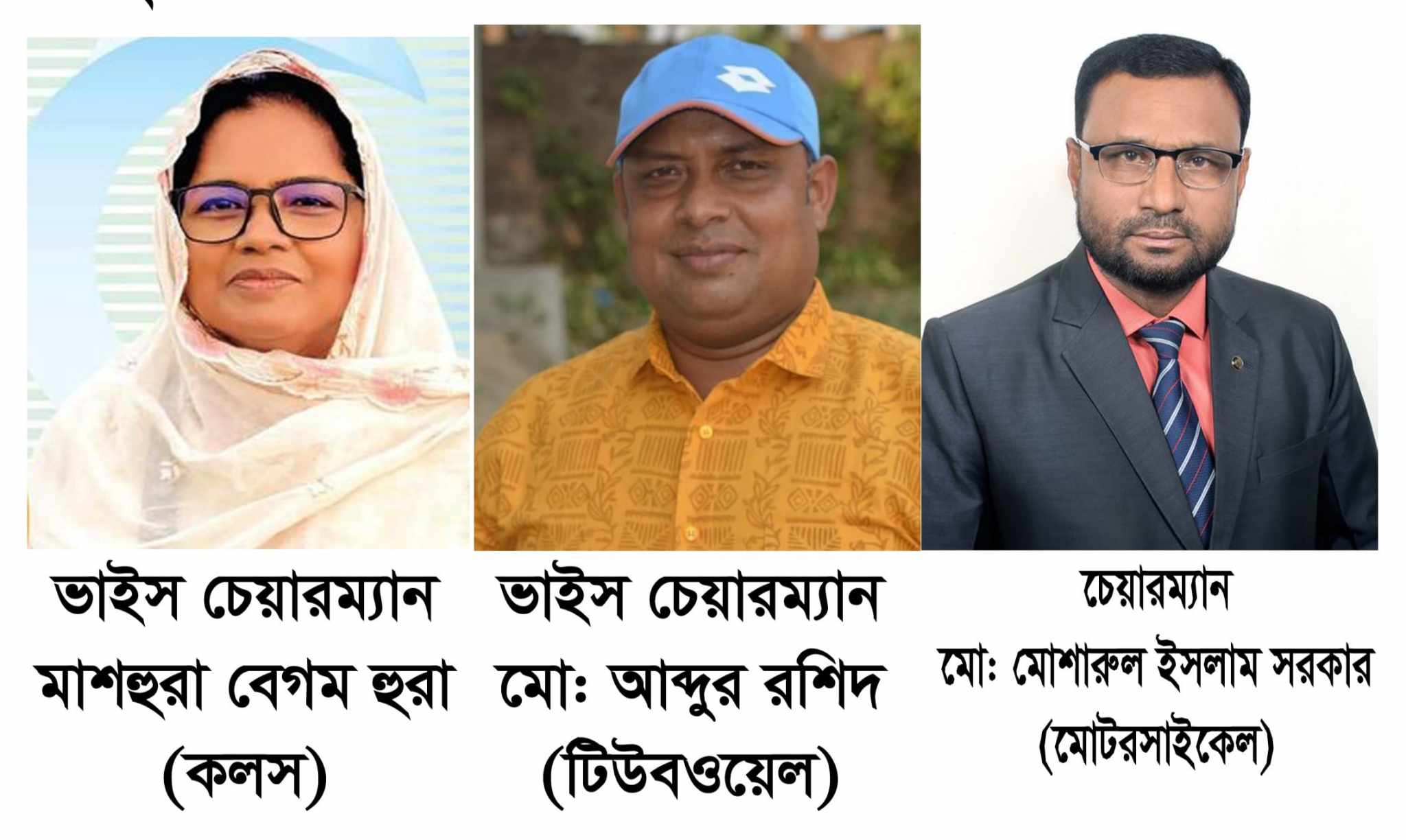 ঠাকুরগাঁও সদর উপজেলা পরিষদ নির্বাচনে বিজয়ী হলেন-চেয়ারম্যান মোশারুল ইসলাম সরকার, আব্দুর রশিদ, মাশহুরা বেগম হুরা।