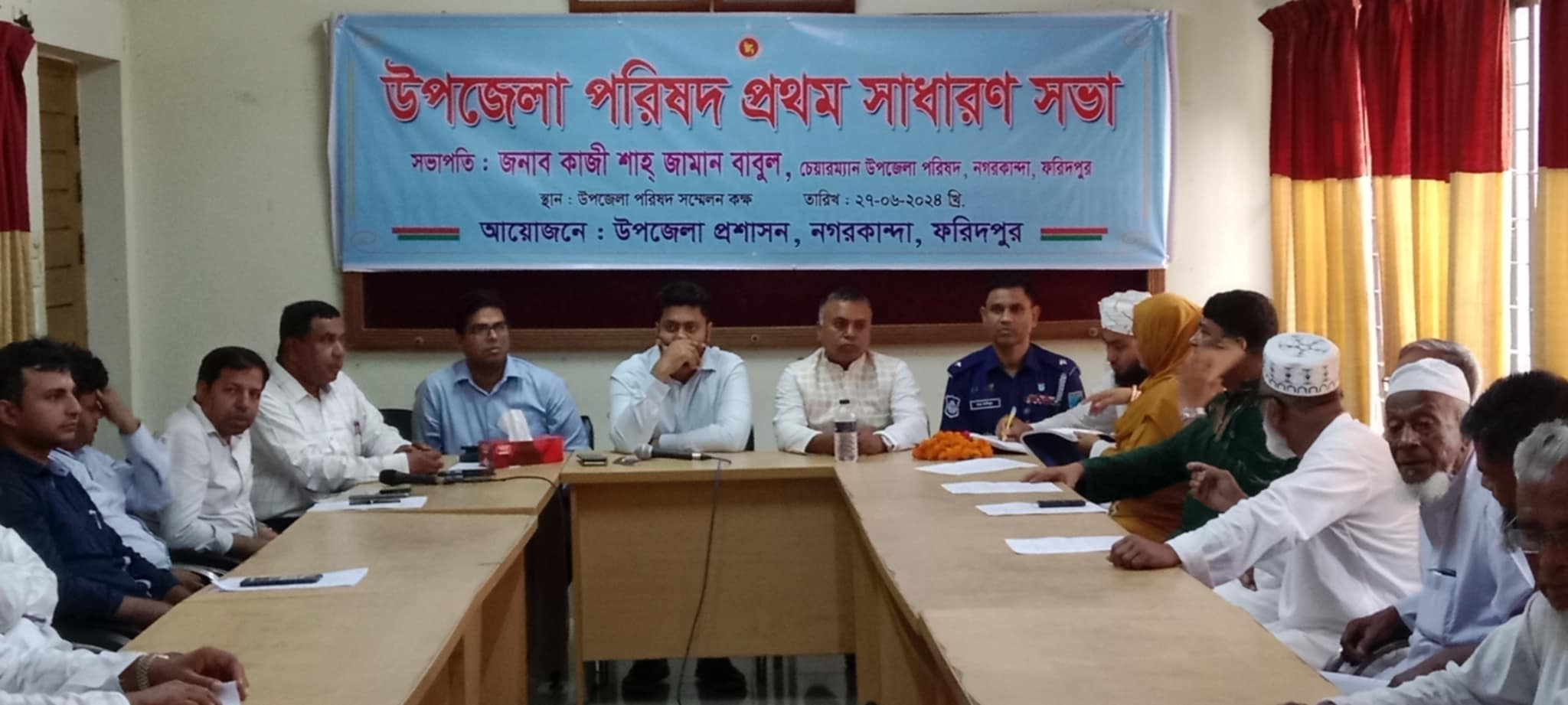 ২৭ জুন বৃহস্পতিবার সকাল ১০ টায় উপজেলা নির্বাহী অফিসার কাফী বিন কবির এর অফিস কক্ষে নবনির্বাচিত নগরকান্দা উপজেলা পরিষদের চেয়ারম্যান কাজী শাহ্ জামান বাবুল, ভাইস চেয়ারম্যান মোস্তাফিজুর রহমান, মহিলা ভাইস চেয়ারম্যান শাহানা পারভীন মনি দায়িত্ব গ্রহণ করেন।উপজেলা প্রশাসনের পক্ষ থেকে তাদের কে বরণ করে নেয়। এবং নবনির্বাচিত উপজেলা চেয়ারম্যান হিসাবে কাচী শাহ্ জামান বাবুল উপজেলা পরিষদ প্রথম সাধারণ সভার সভাপতিত্ব পালন করেন।