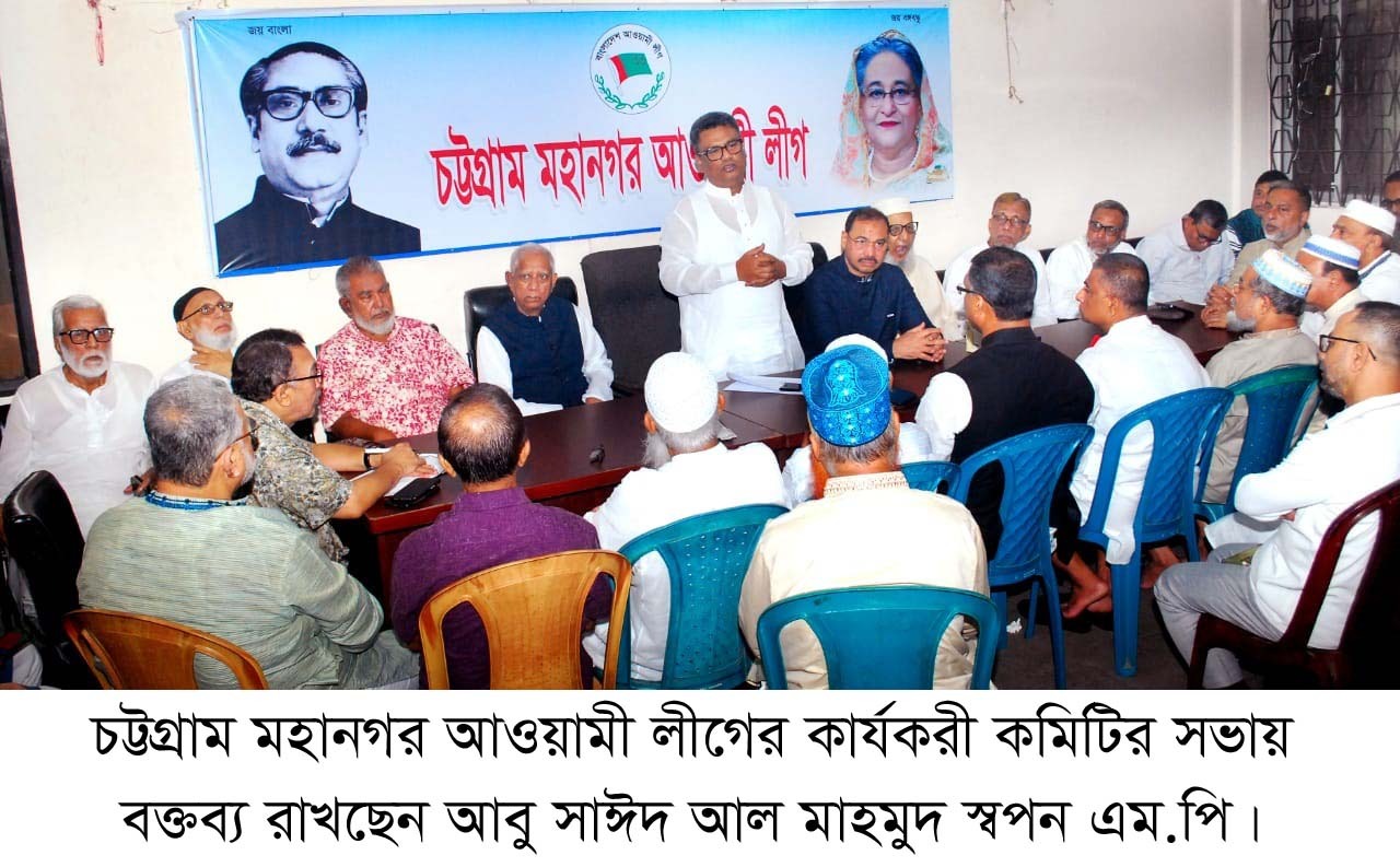 চট্টগ্রাম মহানগর আওয়ামী লীগের সভাপতি মাহতাব উদ্দিন চৌধুরী বলেন, চট্টগ্রাম মহানগর আওয়ামী লীগ আন্দোলন-সংগ্রামে এবং দল ও জাতির সংকট উত্তরণে সবচেয়ে বেশি ফলপ্রসু ও কার্যকর অবদান রেখেছে। মহানগর আওয়ামী লীগের বর্তমান কমিটি কেন্দ্রের নিদের্শনা অনুযায়ী সাংগঠনিক কার্যক্রম ও বিষয়ভিত্তিক ইস্যুতে সবসময় রাজপথে ছিল এবং বর্তমান নেতৃত্ব অবশ্যই কর্মীবান্ধব হিসেবে সকলের আস্থা অর্জন করেছে। এই আস্থা ও বিশ্বাসকে অবশ্যই ধরে রাখতে হবে। চট্টগ্রাম মহানগর আওয়ামী লীগের সাধারণ সম্পাদক ও সাবেক সিটি মেয়র আ.জ.ম নাছির উদ্দীন বলেন, কেন্দ্রের সিদ্ধান্ত অনুযায়ী কেন্দ্রীয় সাংগঠনিক সম্পাদক আবু সাঈদ আল মাহমুদ স্বপন মহানগর আওয়ামী লীগ ও এর আওতাধীন থানা, ওয়ার্ড ও ইউনিট আওয়ামী লীগের সম্মেলন অনুষ্ঠানের ব্যাপারে যে নির্ধারিত তারিখ ও সময়সূচি করে দিয়েছেন তার জন্য তাঁকে ধন্যবাদ জানিয়ে বলেন, নির্ধারিত তারিখ অনুযায়ী মহানগর আওয়ামী লীগসহ থানা, ওয়ার্ড ও ইউনিট স্তরে সম্মেলন অনুষ্ঠানের জন্য দলের সকল স্তরের নেতা-কর্মীরা মুখিয়ে আছেন। এসকল সম্মেলনের মাধ্যমেই দক্ষ ও গ্রহণযোগ্য নেতৃত্ব নির্বাচনের জন্য সকলস্তরের নেতাকর্মীকে আন্তরিকভাবে কাজ করে যেতে হবে। এই কার্য-পরিধি পরিচালনার ক্ষেত্রে অবশ্যই শতভাগ সাংগঠনিক শৃঙ্খলা বজায় রাখতে হবে এবং কোন ধরনের দলীয় আদর্শ ও নীতি-নৈতিকতা বিরোধী আচরণকে কিছুতেই প্রশ্রয় দেয়া হবে না। তিনি আরো বলেন, আমাদের মধ্যে অবশ্যই নেতৃত্ব ও পদ-পদবীর জন্য প্রতিযোগিতা থাকতে পারে। আওয়ামী লীগের মতো একটি বিশাল সংগঠনে এই প্রতিযোগিতা থাকাটাই স্বাভাবিক। তাই বলে দলের ভাবমূর্তি ক্ষুন্ন হওয়ার মত কোন ঘটনা বা আচরণ যাতে না হয় সেদিকেও সকলকে লক্ষ্য রাখতে হবে এবং সর্বোপরি কোনভাবেই যাতে বিভেদ ও অনৈক্যের হানাহানি না ঘটে সেদিকেও লক্ষ্য রাখতে হবে। তিনি এও স্মরণ করিয়ে দেন যে সুনির্দিষ্ট প্রমাণ ও তথ্য-উপাত্ত ছাড়া কারো বিরুদ্ধে ঘরপঢ়তা ও ঢালাও অভিযোগ কিছুতেই কাম্য হতে পারে না। এধরনের কল্পিত অভিযোগ দলের জন্য অত্যন্ত ক্ষতিকারক। এসময় উপস্থিত ছিলেন চট্টগ্রাম মহানগর আওয়ামী লীগের সহ-সভাপতি আলহাজ্ব নঈম উদ্দিন চৌধুরী, এডভোকেট ইব্রাহিম হোসেন চৌধুরী বাবুল, আলতাব হোসেন চৌধুরী বাচ্চু, যুগ্ম সাধারণ সম্পাদক আলহাজ্ব বদিউল আলম, উপদেষ্টা এ.কে.এম বেলায়েত হোসেন, আলহাজ্ব সফর আলী, শেখ মাহমুদ ইসহাক, কোষাধ্যক্ষ আবদুচ ছালাম এম.পি, সাংগঠনিক সম্পাদক নোমান আল মাহমুদ, শফিক আদনান, সম্পাদন মন্ডলীর সদস্য সৈয়দ হাসান মাহমুদ সমশের, চন্দন ধর, মশিউর রহমান চৌধুরী, আহমেদুর রহমান সিদ্দিকী, হাজী মোহাম্মদ হোসেন, ইঞ্জিনিয়ার মানষ রক্ষিত, জুবাইরা নার্গিস খান, দিদারুল আলম চৌধুরী, মাহাবু
