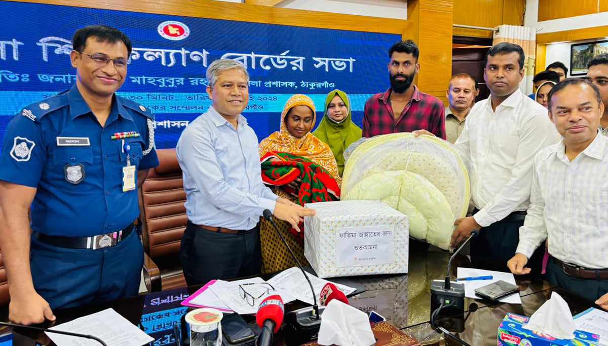 এ সময় উপস্থিত ছিলেন অতিরিক্ত জেলা প্রশাসক (সার্বিক) মো: সোলেমান আলী, অতিরিক্ত পুলিশ সুপার (ক্রাইম এন্ড অ্যাপস) মো: আসাদুজ্জামান, ঠাকুরগাঁও জেনারেল হাসপাতালের সহকারী পরিচালক ডা: মো: খুরশিদ আলম, ঠাকুরগাঁও জেলা সমাজসেবা কার্যালয়ের উপ- পরিচালক আল মামুন, ঠাকুরগাঁও প্রেসক্লাব সভাপতি মনসুর আলী, ঠাকুরগাঁও জেলা কারাগারের জেলার খোন্দকার মো: আল মামুন সহ অন্যান্যরা। প্রসঙ্গত গত সোমবার সকালে গোলাপী নামে এক নারী ঐ শিশুর শ্বাস কষ্ট উল্লেখ করে হাসপাতালে ভর্তি করে। তার কিছুন পর শিশুটিকে রেখে মা চলে যান। শিশুটির অভিভাবককে খোঁজ করেও না পেয়ে শিশু কল্যাণ বোর্ডের সভায় কন্যা শিশুটিকে নিঃসন্তান দম্পতির হাতে তুলে দেয়া হয়।