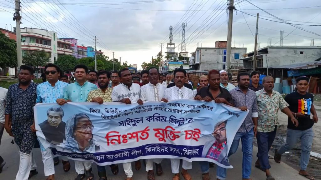 ঝিনাইদহ জেলা আ. লীগের সম্পাদক সাইদুল করিম মিন্টুর মুক্তির দাবীতে বিক্ষোভ মিছিল ও মানববন্ধন