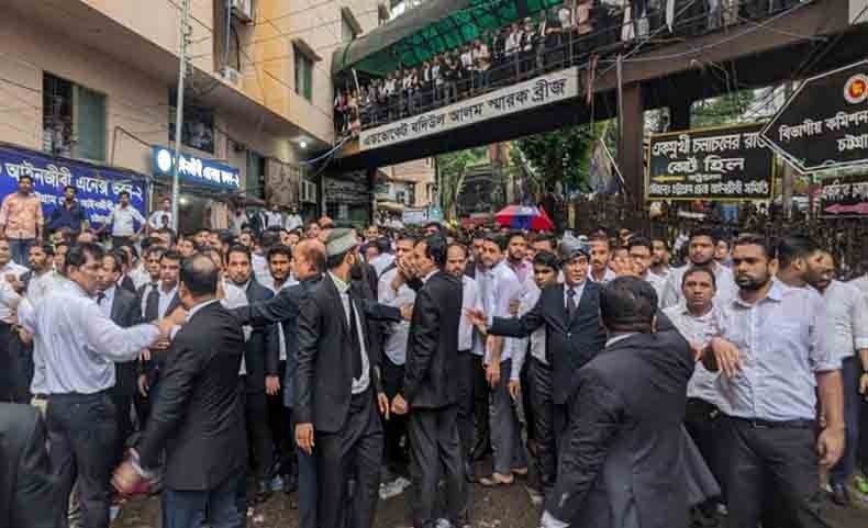 চট্টগ্রাম আদালত প্রাঙ্গনে প্রায় চার ঘণ্টা অবস্থান নিয়ে বিক্ষোভ করেছেন ‘বৈষম্যবিরোধী’ আন্দোলনকারীরা। এর আগে পুলিশ মূল প্রবেশপথে অবস্থান নেওয়ায় বিএনপিপন্থি আইনজীবীরা মিছিল করে আন্দোলনকারীদের আদালত প্রাঙ্গনে নিয়ে যান। পরে মূল আদালত ভবনের পাশে আইনজীবী এনেক্স ভবনের সামনে সড়কে অবস্থান নিয়ে বিকেল পর্যন্ত বিক্ষোভ কর্মসূচি চালিয়ে যান আন্দোলনকারীরা। তাদের বিক্ষোভকে ঘিরে আদালত অঙ্গনে আওয়ামী লীগ ও বিএনপিপন্থি আইনজীবীরা হাতাহাতিতে জড়িয়ে পড়েন।