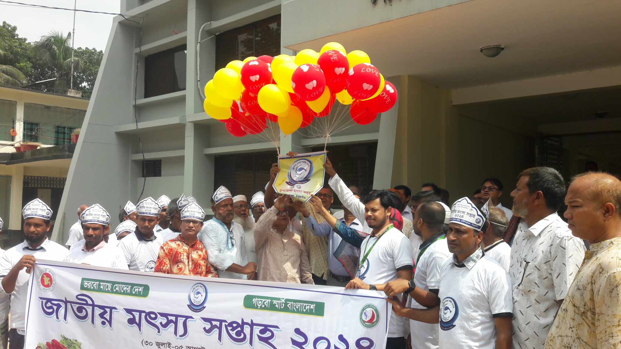 ভরবো মাছে মোদের দেশ, গড়বো স্মার্ট বাংলাদেশ’’ এ প্রতিপাদ্যকে সামনে রেখে ঠাকুরগাঁওয়ের রাণীশংকৈল মৎস্য অধিদপ্তরের আয়োজনে বেলুন উড়িয়ে ব্যাপক উৎসাহ ও আনুষ্ঠানিকতার মধ্যে দিয়ে জাতীয় মৎস্য সপ্তাহের শুভ উদ্বোধন করা হয়।গতকাল বুধবার সকালে মৎস্য সপ্তাহ উদ্বোধন উপলক্ষ্যে এক র্যালী বের করা হয়, র্যালী শেষে উপজেলা পরিষদের পুকুরে মাছের পোনা অবমুক্ত করা হয়।পরে উপজেলা পরিষদ সভাকক্ষে আলোচনা সভা ও পুরস্কার বিতরণ অনুষ্ঠানের আয়োজন করা হয়। উপজেলা নির্বাহী অফিসার রকিবুল হাসানের সভাপতিত্বে প্রধান অতিথি হিসেবে উপস্থিত ছিলেন উপজেলা চেয়ারম্যান আহম্মেদ হোসেন বিপ্লব। বিশেষ অতিথি হিসেবে বক্তব্য রাখেন সাবেক সংসদ সদস্য অধ্যাপক ইয়াসিন আলী, উপজেলা মহিলা ভাইস চেয়ারম্যান সারমিন আক্তার, পৌর আওয়ামী লীগের সভাপতি জাহাঙ্গীর আলম, অধ্যক্ষ হাসান আলী নবাব, সাবেক মহিলা ভাইস চেয়ারম্যান শেফালী বেগম,অধ্যক্ষ মহাদেব বসাক ,বিশিষ্ট সাংবাদিক ও গীতিকার আনোয়ারুল ইসলাম, জাতীয় পার্টির আহ্বায়ক জাহাঙ্গীর আলম, যুগ্ম আহ্বায়ক আবু তাহের, বীর মুক্তিযোদ্ধা হবিবর রহমান প্রমুখ। অনুষ্ঠানে স্বাগত বক্তব্য রাখেন উপজেলা মৎস্য অফিসার আব্দুল জলিল। এ সময় উপজেলার সরকারি বিভিন্ন দপ্তরের কর্মকর্তাগণ উপস্থিত ছিলেন। সভায় আরো বক্তব্য রাখেন বিশিষ্ট মৎস্য চাষী, এজেড আবু সুলতান, আনোয়ারুল ইসলাম,আলোচনা সভা শেষে তিন জন মৎস্য চাষিকে পুরস্কৃত করা হয়।