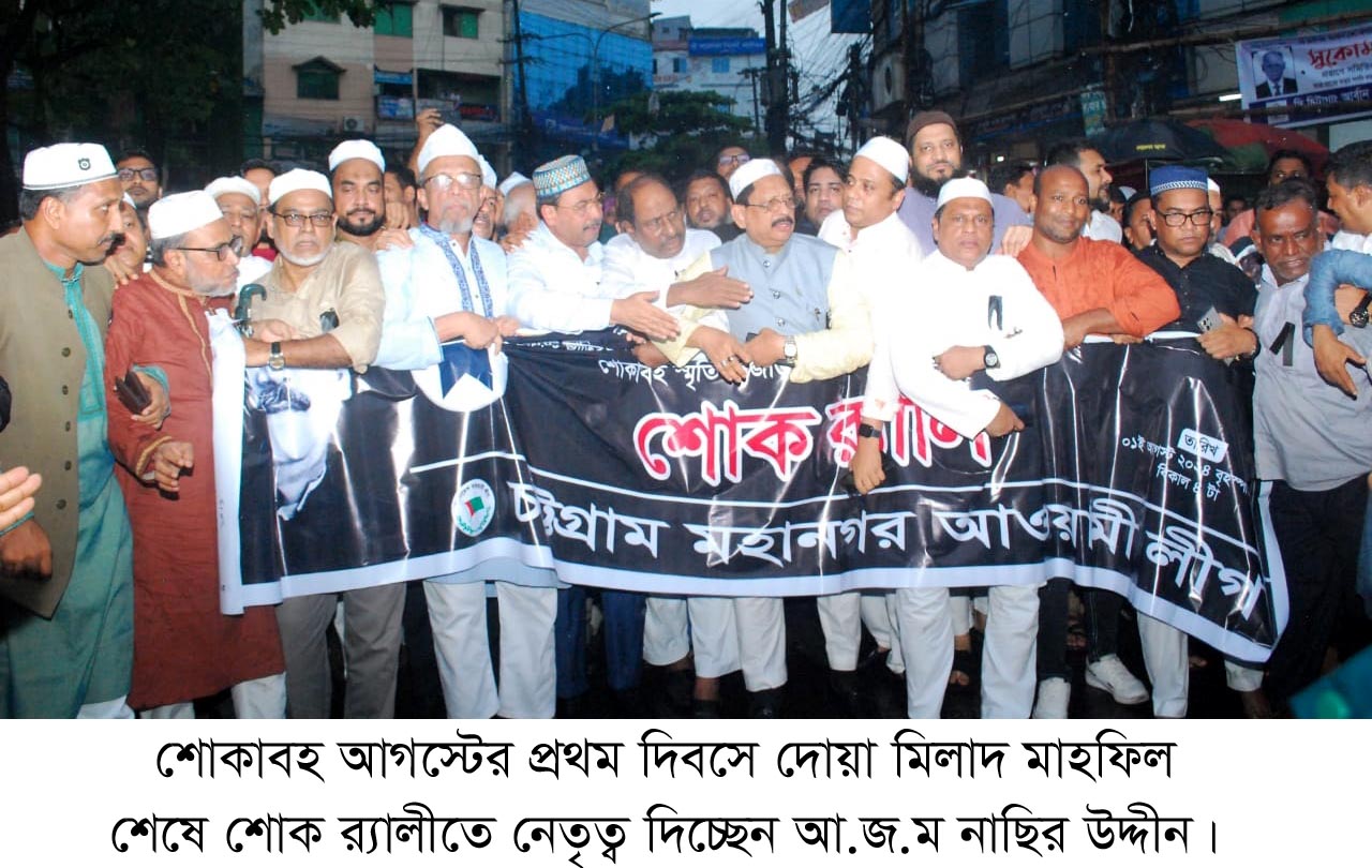 সন্ত্রাস দমন আইনে ও সরকারের নির্বাহী ক্ষমতাবলে স্বাধীনতা ও রাষ্ট্র বিরোধী জামায়াতকে নিষিদ্ধ করার সরকারী প্রজ্ঞাপনকে স্বাগত জানিয়ে মহানগর আওয়ামী লীগের সভাপতি মাহতাব উদ্দীন চৌধুরী বলেন, শোকাবহ আগস্ট মাসের প্রথম দিনে স্বাধীনতা বিরোধী জামায়াতকে নিষিদ্ধ করার সিদ্ধান্ত একটি ঐতিহাসিক ঘটনা। তাই আমাদের প্রত্যেককে যারা স্বাধীনতা সার্বভৌমত্ব বাংলাদশেকে বিশ্বাস করি আমাদের প্রতিপক্ষ যে আবরণ ও মুখোশে থাকুক না কেন তাদেরকে নিশ্চিহ্ন করার সময় এসেছে। তিনি আজ বৃহস্পতিবার বাদ আছর জাতির জনক বঙ্গবন্ধু শেখ মুজিবুর রহমানকে স-পরিবার হত্যা পর্ব শোকাবহ আগস্ট মাসের প্রথম দিনে চট্টগ্রাম মহানগর আওয়ামী লীগের উদ্যোগে আন্দকিল্লাস্থ শাহী জামে মসজিদে অনুষ্ঠিত দোয়া ও মিলাদ মাহফিল শেষে শোক র্যালী পূর্ব এক সংক্ষিপ্ত অনুষ্ঠানে একথা বলেন। এতে চট্টগ্রাম মহানগর আওয়ামী লীগের সাধারণ সম্পাদক ও সাবেক সিটি মেয়র আ.জ.ম নাছির উদ্দীন বলেন, এই আগস্ট মাস বঙ্গবন্ধুকে হত্যাসহ শেখ হাসিনার প্রাণনাশ এবং জঙ্গীবাদের উত্থানের অনকে অঘটন ঘটেছে। এই আগস্ট মাসের প্রারম্ভেই ছাত্রদের কোটা বিরোধী আন্দোলন ¯^াধীনতা ও সার্বভৌমত্বকে নিশ্চিহ্ন করার একটি অশনি সংক্ষেত। আমাদের প্রত্যেক স্তরের নেতা-কর্মীদের একমাত্র দায়িত্ব হলো সরলমতি সন্তানদের বিভ্রত করে জামায়াত-শিবির দেশীয়-আন্তর্জাতিক নীলনকশা অনুযায়ী বাংলাদেশকে ধ্বংস করতে চাই, তাদের বিরুদ্ধে ৭১’র মুক্তিযুদ্ধের চেতনা দিবা-নিশি রাজপথে থাকতে হবে। শোকাবহ আগস্ট মাসের শুরুর প্রথম দিনে শোককে শক্তিতে পরিণত করার দুর্জয় সাহস নিয়ে জামায়াত-শিবির ও তাদের প্রধান আশ্রয়দাতা বিএনপির ¯^াধীনতা বিরোধী নেতাকর্মীদের ঠিকানা অনুসন্ধান করে তাদের কবর রচনা করতে হবে। দোয়া ও মিলাদ মাহফিল শেষে আন্দরকিল্লা শাহী জামে মসজিদ চত্বর হতে একটি বিশাল শোক র্যালী বিভিন্ন সড়ক প্রদক্ষিণ শেষে চট্টগ্রাম প্রেস ক্লাবে এসে শেষ হয়। মিলাদ মাহফিলে উপস্থিত ছিলেন চট্টগ্রাম মহানগর আওয়ামী লীগের সহ-সভাপতি এডভোকেট ইব্রাহিম হোসেন চৌধুরী বাবুল, আলহাজ্ব খোরশেদ আলম সুজন, আলহাজ্ব আলতাফ হোসেন চৌধুরী বাচ্চু, যুগ্ম সাধারণ সম্পাদক, সিটি মেয়র এম রেজাউল করিম চৌধুরী, উপদেষ্টা আলহাজ্ব সফর আলী, শেখ মাহমুদ ইসহাক, মুক্তিযোদ্ধা এনামুল হক চৌধুরী, কোষাধ্যক্ষ আব্দুচ ছালাম এম.পি, সাংগঠনিক সম্পাদক, সাবেক সংসদ সদস্য নোমান আল মাহমুদ, শফিক আদনান, চৌধুরী হাসান মাহমুদ হাসনি, সম্পাদক মন্ডলীর সদস্য আলহাজ্ব শফিকুল ইসলাম ফারুক, সৈয়দ হাসান মাহমুদ শমসের, এডভোকেট শেখ ইফতেখার সাইমুল চৌধুরী, মশিউর রহমান চৌধুরী, হাজী মোহাম্মদ হোসেন, দিদারুল আলম চৌধুরী, আবু তাহের, ডা. ফয়সল ইকবার চৌধুরী, শহিদুল আলম, জ