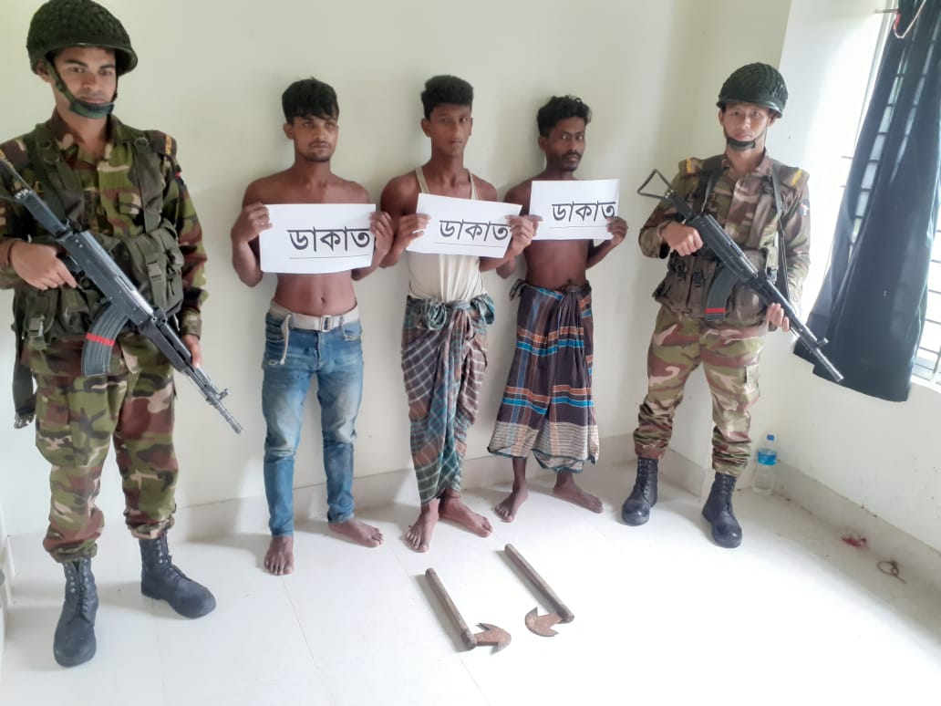 শনিবার (১০ আগস্ট) দুপুর ১টার দিকে আটক ডাকাতদের ভ্রাম্যমাণ আদালতে ২মাসের কারাদন্ড দেওয়া হয়। একই দিন দুপুরের দিকে সেনাবাহিনীর ১৬ ফিল্ড রেজিমেন্ট আর্টিলারি ক্যাম্প থেকে এক প্রেস বিজ্ঞপ্তিতে এসব তথ্য নিশ্চিত করা হয়। এর আগে, শুক্রবার দিবাগত রাত ১টার দিকে উপজেলার আন্ডারচর ইউনিয়ন থেকে তাদের আটক করে স্থানীয় এলাকাবাসী।