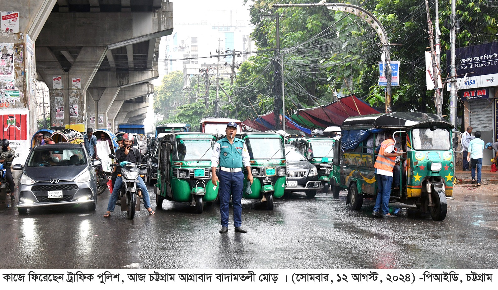 চট্টগ্রাম মহানগরীতে প্রায় এক সাপ্তাহ পর পুলিশ সদস্যরা ট্রাফিক নিয়ন্ত্রণে যোগ দিয়েছেন। তাদের পাশাপাশি শিক্ষার্থীরাও ট্রাফিক নিয়ন্ত্রণে কাজ করছেন। গতকাল সোমবার সকাল থেকে নগরীর আগ্রাবাদ, জিইসি, টাইগারপাস, ওয়াসা ও দামপাড়া মোড়ে ট্রাফিক পুলিশের সদস্যদের কাজ করতে দেখা গেছে। তাদের সহযোগিতা করছেন বিভিন্ন স্কুল কলেজের শিক্ষার্থী, আনসার, বিএনসিসি ও রোভার স্কাউটের সদস্যরা।
