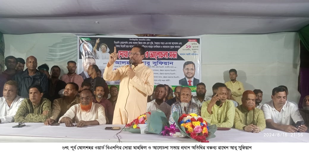 আজ ১৬ আগষ্ট (বৃহস্পতিবার) সন্ধ্যায় সাবেক প্রধানমন্ত্রী ও বিএনপি চেয়ারপার্সন, দেশনেত্রী বেগম খালেদা জিয়া’র ৮০তম জন্মদিন উপলক্ষে তাঁর দীর্ঘায়ু ও সুস্থতা ও সাম্প্রতিক ছাত্র-জনতার আন্দোলনে শহীদদের আত্মার মাগফিরাত ও আহতদের সুস্থতা কামনায় ৬নং পূর্ব ষোলশহর ওয়ার্ডস্থ খালাসীপুকুর ইউনিট বিএনপি, অঙ্গ ও সহযোগী সংগঠনের উদ্যোগে আয়োজিত দোয়া মাহফিল ও আলোচনা সভায় প্রধান অতিথির বক্তব্যে তিনি এসব কথা বলেন।