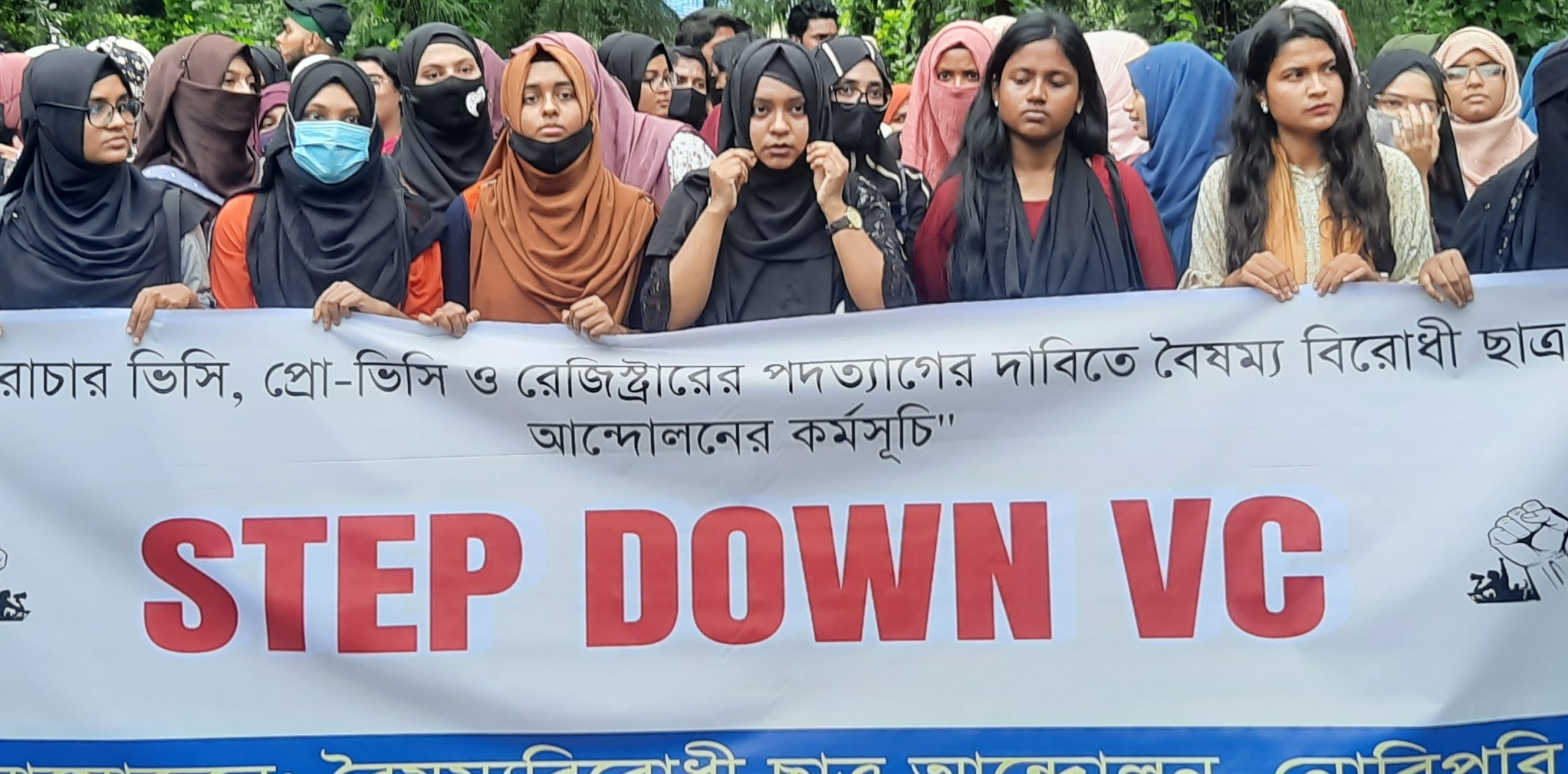 নোয়াখালী বিজ্ঞান ও প্রযুক্তি বিশ্ববিদ্যালয়ের (নোবিপ্রবি ) উপাচার্য অধ্যাপক ড. দিদার উল আলমকে স্বৈরাচারের দোসর ও দুর্নীতিবাজ দাবি করে তার পদত্যাগ দাবি করেছেন বৈষম্য বিরোধী আন্দোলনের সাধারণ শিক্ষার্থীরা। এ সময় উপ-উপাচার্য অধ্যাপক ড. আবদুল বাকীর পদত্যাগ ও দাবি করা হয়। রোববার (১৮ আগস্ট) দুপুরে প্রশাসনিক ভবন ও উপাচার্য ভবন ঘেরাও করে সাধারণ শিক্ষার্থীরা বৈষম্যবিরোধী ছাত্র আন্দোলনের ব্যানারে এ কর্মসূচি পালন করে।