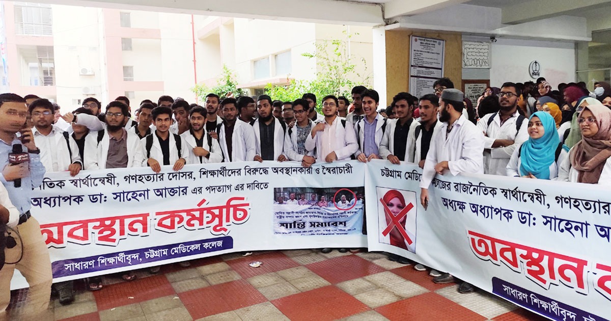 ছাত্র-জনতার আন্দোলনে ‘বিপক্ষে’ অবস্থান নেওয়ার অভিযোগ তুলে চট্টগ্রাম মেডিকেল কলেজ (চমেক) অধ্যক্ষের পদত্যাগ দাবি করেছেন শিক্ষার্থীরা। মঙ্গলবার সকাল থেকে অধ্যক্ষ সাহেনা আক্তারের অফিস কক্ষের সামনে জড়ো হয়ে বিক্ষোভ করতে থাকেন শিক্ষার্থীরা। এ সময় দাবি আদায় না হলে ক্লাস বর্জন ও লাগাতার কর্মসূচির হুঁশিয়ারিও দেওয়া হয়।