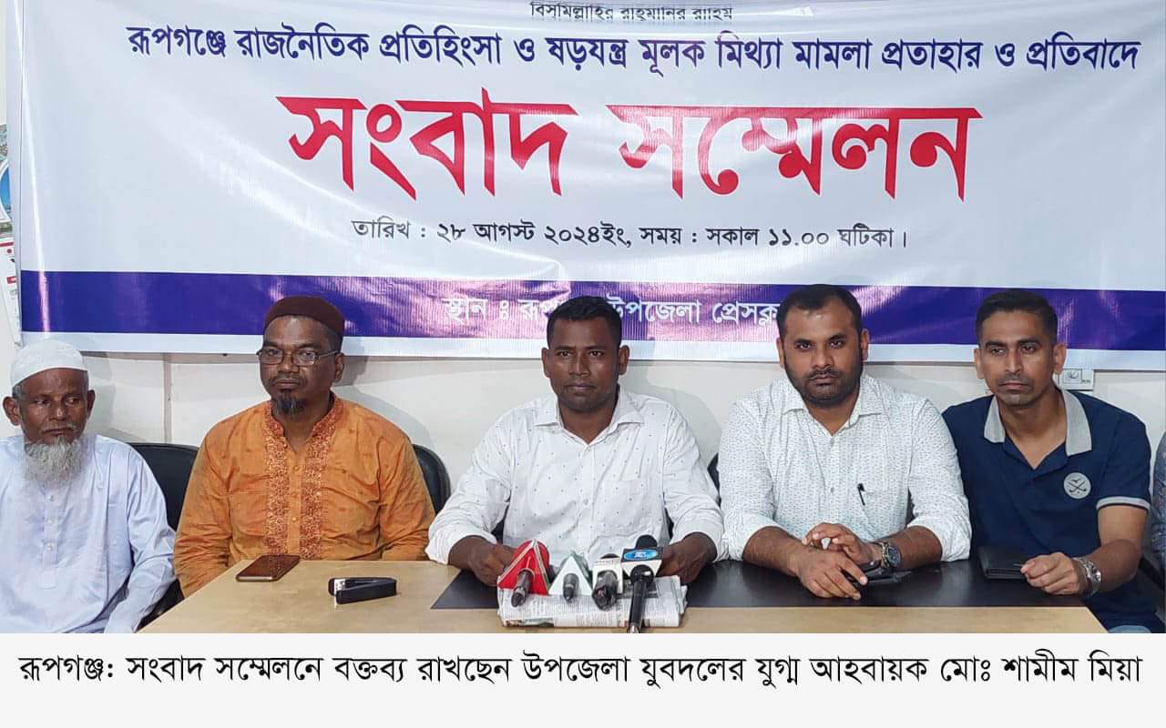 বৈষম্যবিরোধী ছাত্র আন্দোলনের পর রূপগঞ্জ উপজেলা বিএনপির নেতাকর্মীদের নামে দায়েরকৃত হত্যা মামলা থেকে অব্যাহতির দাবি করা হয়েছে। গতকাল ২৮আগষ্ট বুধবার রূপগঞ্জ উপজেলা প্রেসক্লাবে আয়োজিত এক সংবাদ সম্মেলনে তারা এ দাবি জানান। সংবাদ সম্মেলনে লিখিত বক্তব্য পাঠ করেন রূপগঞ্জ উপজেলা যুবদলের সিনিয়র যুগ্ম সাধারণ সম্পাদক মোঃ শামীম মিয়া।