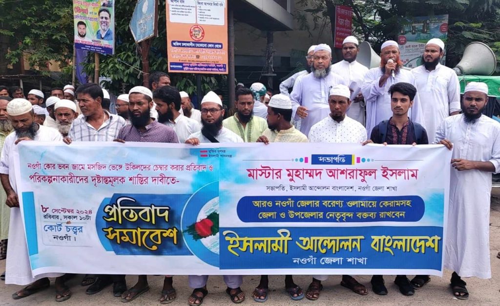 কোর জামে মসজিদ ভেঙ্গে অ্যাডভোকেটদের অফিস বানানোর প্রতিবাদে নওগাঁয় মানববন্ধন নওগাঁ প্রতিনিধি