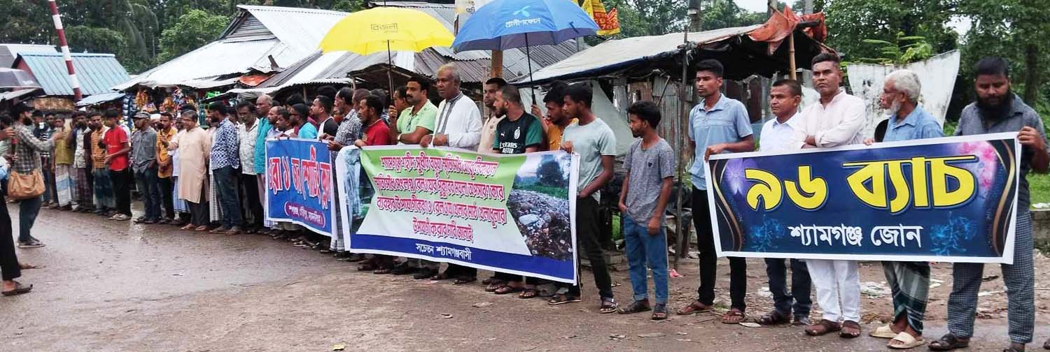 রবিবার (১৫ সেপ্টেম্বর) বিকালে শ্যামগঞ্জ সুধীর বড়–য়া চত্বরে সচেতন শ্যামগঞ্জবাসী, ওরা ১১ জন স্পোর্টিং ক্লাব ও এসএসসি ব্যাচ’৯৬ এর যৌথ উদ্যোগে এই মানববন্ধন অনুষ্ঠিত হয়।