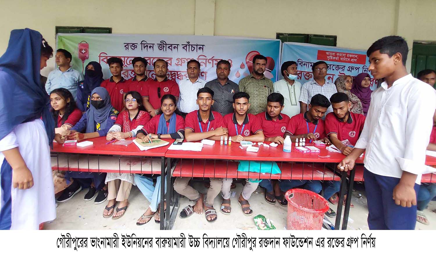 ময়মনসিংহের গৌরীপুরে বিনামূল্যের রক্তের গ্রুপ নির্ণয় ও রক্তদানে উদ্বুদ্ধকরণ বিষয়ক আলোচনা সভা অনুষ্ঠিত হয়েছে। রবিবার (১৫ সেপ্টেম্বর) গৌরীপুর রক্তদান ফাউন্ডেশন এর ভাংনামারী ইউনিটের আয়োজনে উপজেলার বারুয়ামারি উচ্চ বিদ্যালয়ে রক্তের গ্রুপ নির্ণয় ও রক্তদানে উদ্বুদ্ধকরণ বিষয়ক আলোচনা সভা অনুষ্ঠিত হয়েছে। এ দিন তারা ৭৪৫ জনের বøাড গ্রæপিং করে।