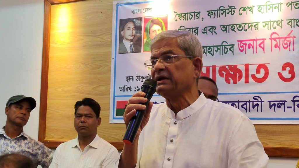 আন্দোলনে আহত ও নিহতদের স্বজনদের শেখ হাসিনার বিচার দাবির কথা শুনে মির্জা ফখরুল বলেন, এ অনুষ্ঠানটা আমার জন্য অনত্যন্ত হৃদয় বিদারক। ফ্যাসিস্ট শেখ হাসিনা সরকারের পতনের আন্দোলনে গিয়ে এখানে অনেকেই চোখ হারিয়েছেন, পা কেটে ফেলতে হয়েছে। অনেকে তাদের আপনজন হারিয়েছেন। আমরা ৭১ এ যুদ্ধ করেছিলাম বিদেশের সঙ্গে পাকিস্তানের সঙ্গে। কিন্তু ২০২৪ আমাদের যুদ্ধ করতে হয়েছে এ দেশের সরকারদলীয় লোকদের সাথে। তিনি বলেন আপনারা জানেন আমরাএকটি রাজনৈতিক দল। আমরা এখন রাষ্ট্র ক্ষমতায় নাই। কিন্তু অন্তবর্তীকালীন সরকার সবার সম্মতিতে গঠিতনহয়েছে তারা চেষ্টা করছে অর্প সময়ের মদ্যে বিষয়গুলো বিচার করার। বিশেষ করে শেখ হাসিনা যার নির্দেশে অতিতে ও বর্তমানে এত খুন হয়েছে।