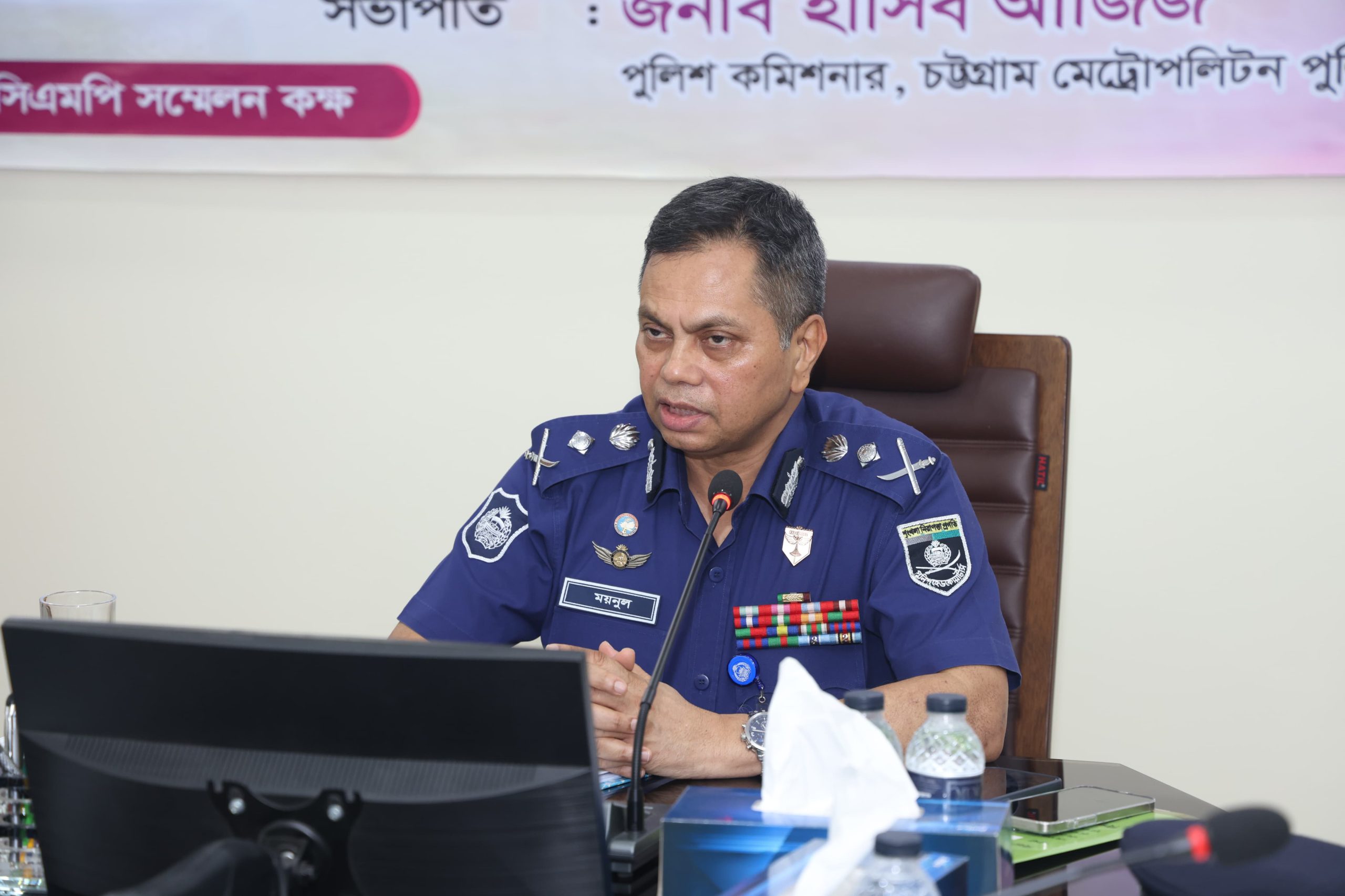 ইন্সপেক্টর জেনারেল অব পুলিশ, বাংলাদেশ মোঃ ময়নুল ইসলাম এনডিসি বলেছেন, মব জাস্টিসের নামে কেউ আইন হাতে তুলে নিলে কঠোর ব্যবস্থা।আইজিপি আজ শনিবার বিকালে চট্টগ্রাম শহরের দামপাড়াস্থ চট্টগ্রাম মেট্রোপলিটন পুলিশের (সিএমপি) সম্মেলন কক্ষে চট্টগ্রাম বিভাগের ঊর্ধ্বতন পুলিশ কর্মকর্তাদের সাথে মতবিনিময় সভা শেষে সিএমপি কমিশনারের কার্যালয়ের সম্মেলন কক্ষে সাংবাদিকদের সাথে মতবিনিময়কালে এ কথা বলেন। এ সময় র্যাবের মহাপরিচালক এ কে এম শহিদুর রহমান, চট্টগ্রাম মেট্রোপলিটন পুলিশের কমিশনার হাসিব আজিজ এবং চট্টগ্রাম রেঞ্জের ডিআইজি মোঃ আহসান হাবীব পলাশ উপস্থিত ছিলেন।আইজিপি বলেন, যেসব জঙ্গি জামিনে রয়েছে তারা নজরদারির মধ্যে থাকবে। তারা আবার জঙ্গিবাদে জড়ালে কঠোর ব্যবস্থা নেওয়া হবে।চলমান যৌথ অভিযান প্রসঙ্গে আইজিপি বলেন, এখন পর্যন্ত ২৩৮টি অস্ত্র উদ্ধার হয়েছে। পুলিশের লুণ্ঠিত অস্ত্রের মধ্যে ৭৫ ভাগ উদ্ধার হয়েছে। তিনি বলেন, অস্ত্র ব্যবহারকারী যেখানেই থাকুক কঠোর আইনের আওতায় আনা হবে।তিনি বলেন, আসন্ন দুর্গাপূজা উৎসবের মধ্য দিয়েই পালিত হবে। দুর্গাপূজায় সার্বিক নিরাপত্তা নিশ্চিত করা হবে। সাম্প্রদায়িক সম্প্রীতি বিনষ্টকারী কোনো ঘটনা যাতে না ঘটে সেই ব্যাপারে সকলকে সতর্ক থাকতে হবে। সকল অপতৎপরতা রুখে দিতে হবে। পুলিশ প্রধান বলেন, আমরা পুলিশি কার্যক্রমের মাধ্যমে জনগণের আস্থা ফিরিয়ে আনতে চাই। আমরা প্রকৃত অর্থেই জনগণের বন্ধু হতে চাই।সাংবাদিকদের এক প্রশ্নের জবাবে আইজিপি বলেন, মামলার আসামি হলেই গ্রেফতার করা হবে না। শুধুমাত্র তদন্তে সংশ্লিষ্টতা পাওয়া গেলেই গ্রেফতার করা হবে। নিরীহ কাউকে গ্রেফতার করা হবে না।এর আগে আইজিপি আজ দুপুরে চট্টগ্রাম জেলা পুলিশ লাইনসে সিএমপি ও চট্টগ্রাম রেঞ্জের যৌথ উদ্যোগে আয়োজিত চট্টগ্রাম রেঞ্জের সকল পুলিশ ইউনিটের ঊর্ধ্বতন কর্মকর্তা ও সকল পর্যায়ের পুলিশ সদস্যদের সাথে বিশেষ কল্যাণ সভায় প্রধান অতিথি হিসেবে বক্তব্য রাখেন।চট্টগ্রাম রেঞ্জের ডিআইজি মোঃ আহসান হাবীব পলাশের সভাপতিত্বে বিশেষ কল্যাণ সভায় সিএমপি কমিশনার হাসিব আজিজসহ চট্টগ্রাম বিভাগের বিভিন্ন ইউনিটের সকল স্তরের অফিসার ও ফোর্স উপস্থিত ছিলেন।