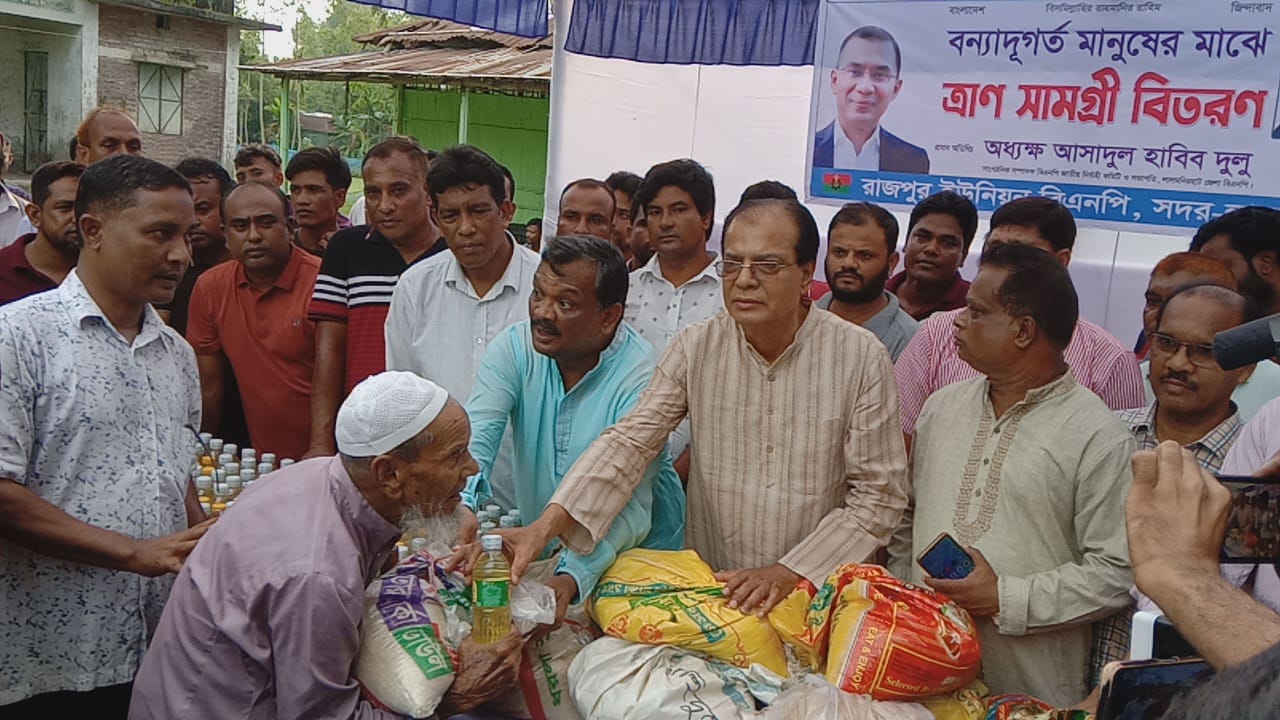 বিএনপি'র ভারপ্রাপ্ত চেয়ারম্যান তারেক রহমানের নির্দেশনায় লালমনিরহাটের তিস্তা পাড়ের বন্যাদুর্গত দুস্থ ও অসহায় মানুষের মাঝে ত্রাণ সামগ্রী বিতরণ করেছেন লালমনিরহাট জেলা বিএনপি ।মঙ্গলবার (১ অক্টোবর ২০২৪) বিকাল ৪ টায় লালমনিরহাট সদর উপজেলার রাজপুর ও খুনিয়াগাছ ইউনিয়নের ৫০০টি বানভাসি পরিবারের মাঝে চাল, ডাল ও তেল ত্রাণ সামগ্রী বিতারণ করেন লালমনিরহাট জেলা বিএনপি।