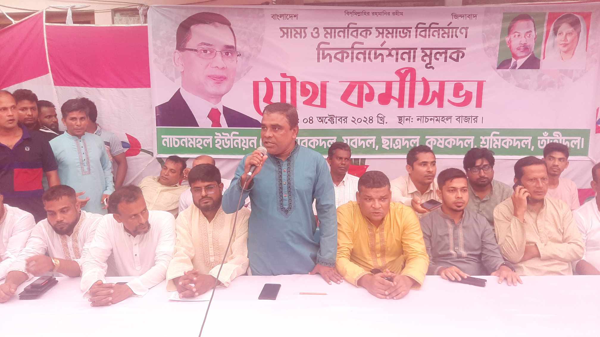 ঝালকাঠির নলছিটি উপজেলার নাচনমহল ইউনিয়নে সাম্য ও মানবিক সমাজ বিনির্মাণে স্বেচ্ছাসেবক দল, যুবদল ও ছাত্রদলের যৌথ কর্মীসভা অনুষ্ঠিত হয়েছে। শুক্রবার বিকেলে নাচনমহল বাজারে এ সভা অনুষ্ঠিত হয়। এতে প্রধান অতিথি ছিলেন নলছিটি উপজেলা স্বেচ্ছাসেবক দলের আহ্বায়ক তৌহিদ আলম মান্না।