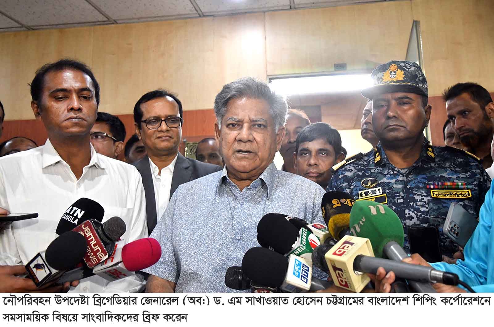 নৌপরিবহন এবং পাট ও বস্ত্র মন্ত্রণালয়ের উপদেষ্টা ব্রিগেডিয়ার জেনারেল (অব.) ড. এম সাখাওয়াত হোসেন বলেছেন, বিএসসির ৫টি জাহাজে প্রচুর লাভ হচ্ছে। একটিও বাংলাদেশে নেই। জ্যামাইকাসহ বিভিন্ন দেশে এসব জাহাজ আছে। বিএসসিতে জাহাজের বহর আরও বড় হবে ইনশাআল্লাহ। যত তাড়াতাড়ি সম্ভব। কিছু জাহাজ দরকার। এ জাহাজ দিয়ে টাকা আয় করতে হবে। আমরা যতদিন আছি, একটা কাজ করতে পারি সেটা হচ্ছে দুর্নীতি কমানো। রোববার দুপুরে চট্টগ্রামে বাংলাদেশ শিপিং কর্পোরেশনের কনফারেন্স রুমে বাংলাদেশ পেট্রোলিয়াম কর্পোরেশনের (বিপিসি) চেয়ারম্যান এবং পরিচালকসহ শীর্ষস্থানীয় কর্মকর্তাদের সাথে মতবিনিময় সভা শেষে সাংবাদিকদের ব্রিফিংকালে তিনি এসব কথা বলেন।