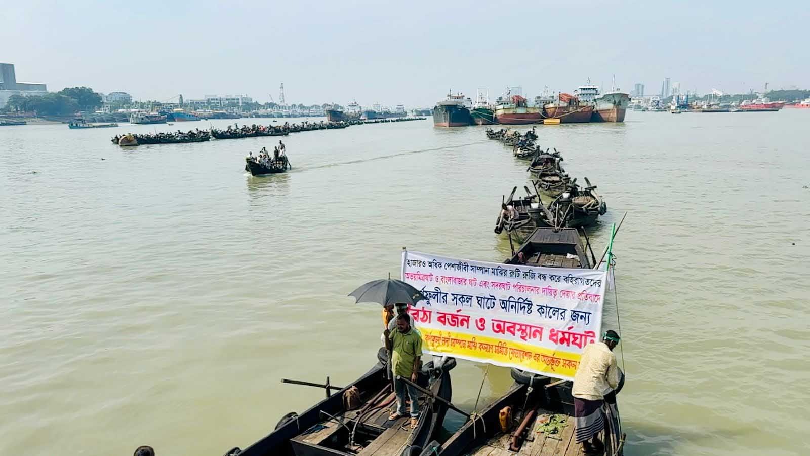 সোমবার সকালে সরেজমিনে নৌ ঘাটে উপস্থিত সাম্পান মাঝিরা জানান, ২০০৩ সালের পাটনিজীবী নীতিমালা তোয়াক্কা না করে একের পর এক অবৈধভাবে মাঝিদের ঘাট ছাড়া করছেন চট্টগ্রাম সিটি কর্পোরেশন। এতে দেয়ালে মাঝিমাল্লাদের পিট ঠেকে যাওয়ায় বাধ্য হয়েছে বৈঠা বর্জন ও অবস্থান ধর্মঘট পালন করতে।
