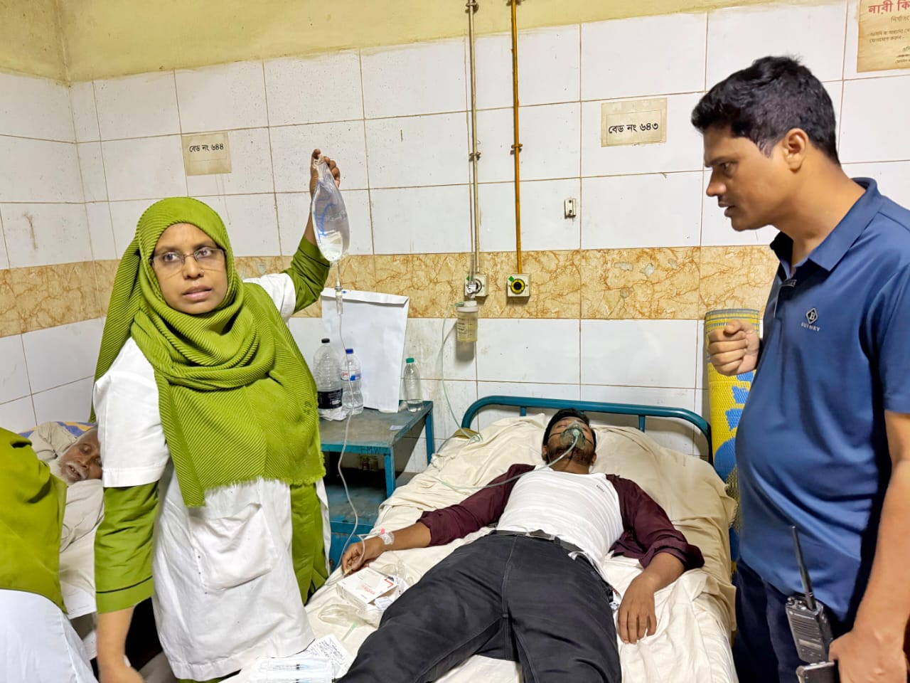 আহত অবস্থায় শহিদুলকে উদ্ধার করে ২৫০ শয্যা নওগাঁ জেনারেল হাসপাতালে ভর্তি করে স্থানীয়রা। বর্তমানে সেখানে চিকিৎসাধীন রয়েছেন তিনি।