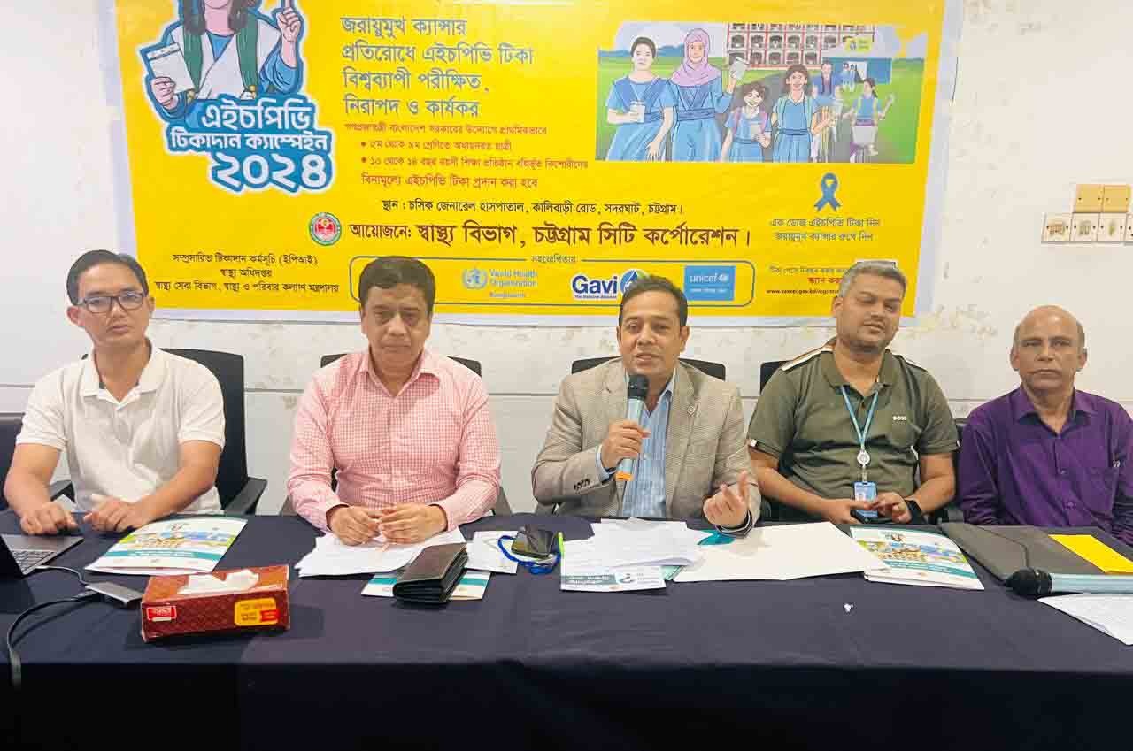 কিশোরী ও মাতৃমৃত্যু হার কমানোর লক্ষ্যে ৫ম থেকে ৯ম শ্রেণিতে অধ্যয়রত ছাত্রীদের ও ১০-১৪ বছরের কিশোরীদের জরায়ুমুখ ক্যান্সার প্রতিরোধে মাসব্যাপী এইচপিভি প্রথম ডোজের টিকা কার্যক্রম আগামীকাল বৃহস্পতিবার থেকে শুরু হচ্ছে। এ উপলক্ষে বুধবার সকালে চট্টগ্রাম সিটি কর্পোরেশন জেনারেল হাসপাতালে এক সংবাদ সম্মেলনের মাধ্যমে এইচপিভি টিকা প্রদান এবং কার্যক্রম সম্পর্কে অবহিত করা হয়। সংবাদ সম্মেলনে উপস্থিত ছিলেন চট্টগ্রাম সিটি কর্পোরেশন প্রধান নির্বাহী কর্মকর্তা শেখ মুহম্মদ তৌহিদুল ইসলাম, ভারপ্রাপ্ত প্রধান স্বাস্থ্য কর্মকর্তা ডা. মোহাম্মদ ইমাম হোসেন রানা, সহকারী স্বাস্থ্য কর্মকর্তা ডাঃ তপন কুমার চক্রবর্তী, বিশ্ব স্বাস্থ্য সংস্থার কো-অর্ডিনেটর ডা. মো. সরওয়ার আলম, ইউনিসেফ কনসালটেন্ট ডা. প্রসূন রায়।
