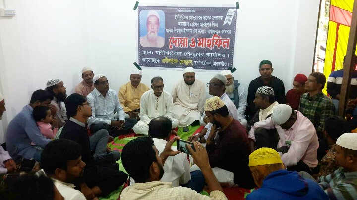 ঠাকুরগাঁওয়ের রাণীশংকৈল প্রেসক্লাবের আয়োজনে শুক্রবার(২৫ অক্টোবর) বাদ জুম্মা সাবেক সাধারণ সম্পাদক আনোয়ার হোসেন আকাশের পিতা মরহুম সিরাজুল ইসলামের মৃত্যুতে দোয়া মাহফিল ও আলোচনা সভা অনুষ্ঠিত হয়েছে।