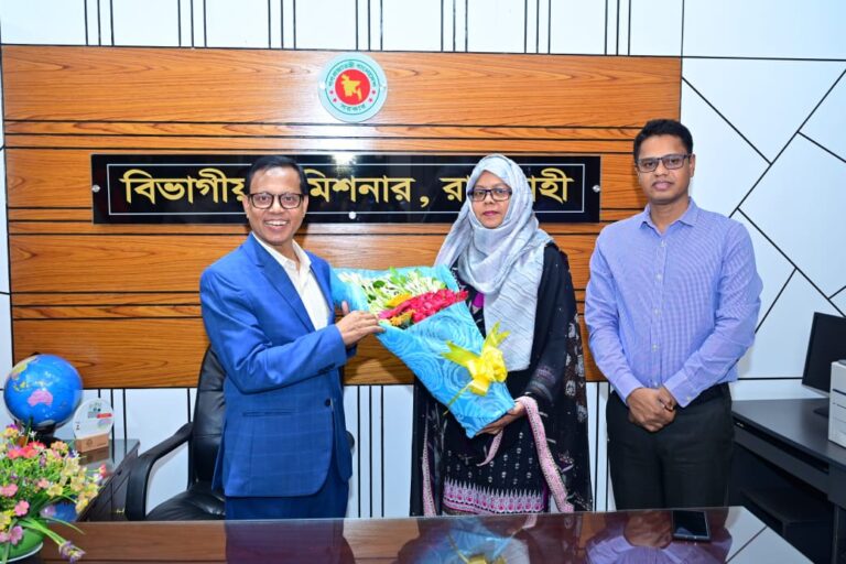 রাজশাহী জেলায় প্রথমবারের মতো নারী জেলা প্রশাসক (ডিসি) হিসেবে পদায়ন হয়েছেন আফিয়া আখতার। শনিবার (২ নভেম্বর) সন্ধ্যায় বিভাগীয় কমিশনার ড. দেওয়ান মুহাম্মদ হুমায়ূন কবীর নিজ কার্যালয়ে জেলার প্রথম নারী ডিসি আফিয়া আখতারকে শুভেচ্ছা জানিয়েছেন। তিনি আজ রোববার (৩ নভেম্বর) রাজশাহীর ১২৭তম জেলা প্রশাসক ও জেলা ম্যাজিস্ট্রেট হিসেবে যোগদান করবেন।