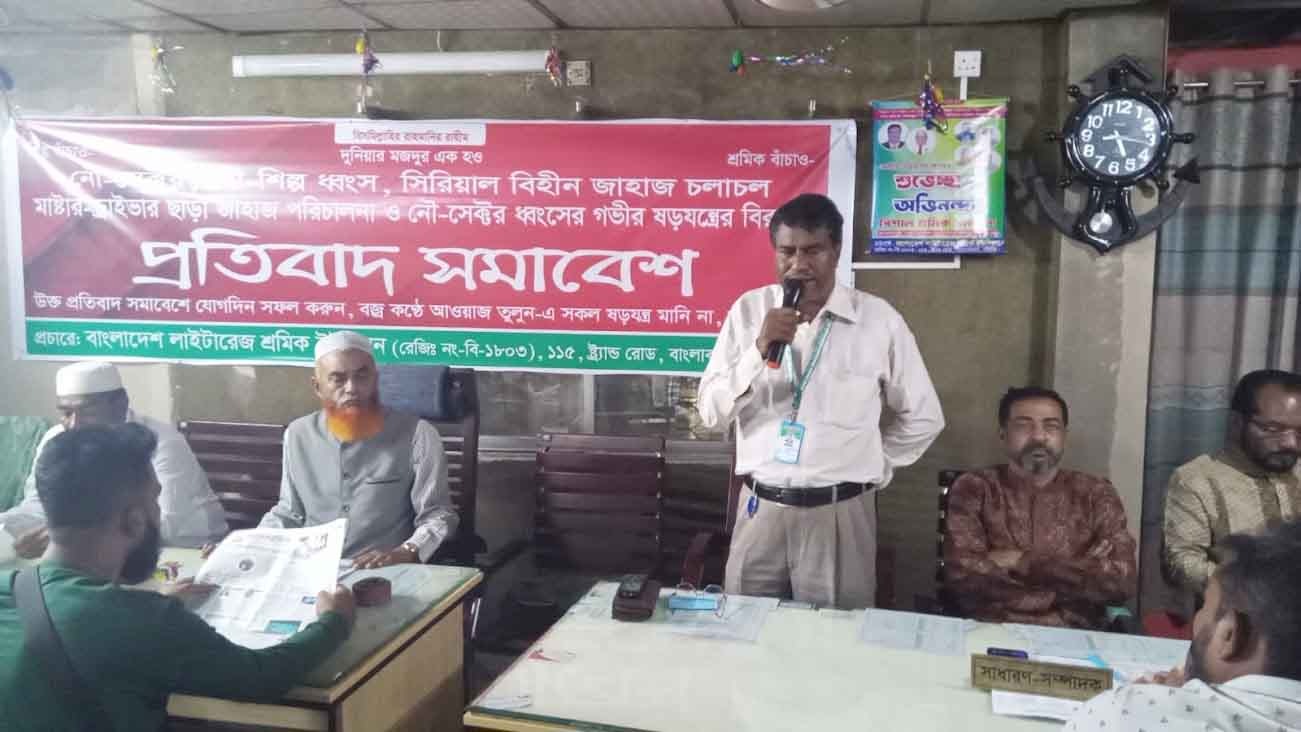 বাংলাদেশ লাইটারেজ শ্রমিক ইউনিয়ন এর বাংলাবাজারস্থ অফিস কার্যালয়ে নৌ-যান শ্রমিকদের প্রতিবাদ সভা অনুষ্ঠিত হয়। বুধবার উক্ত সভায় সংগঠনের সভাপতি মোঃ মিজানুর রহমান সভাপতিত্ব করেন। সভায় প্রধান অতিথি ছিলেন বাংলাদেশ লাইটারেজ শ্রমিক ইউনিয়নের উপদেষ্টা হাজী শেখ মোঃ ইছামিয়া ও প্রধান বক্তা ছিলেন সংগঠনের সহ সাধারণ সম্পাদক মোঃ জসিম উদ্দিন (মাষ্টার)। সভায় বক্তব্য রাখেন বাংলাদেশ লাইটারেজ শ্রমিক ইউনিয়নের সহ সভাপতি মোঃ তালিম উল্লাহ ফকির (ড্রাইভার) ও মোঃ জাহাঙ্গীর আলম (মাষ্টার), সাংগঠনিক সম্পদক মোঃ শফিকুল ইসলাম (মাষ্টার), অর্থ সম্পাদক মোঃ আব্দুল আউয়াল আব্দুলাহ (ড্রাইভার), কার্যনির্বাহী সদস্য মোঃ জাহাঙ্গীর আলম, মোঃ শাহাজাহান (মাষ্টার), আরো বক্তব্য রাখেন বাংলাদেশ নৌ-যান শ্রমিক ফেডারেশন এর কেন্দ্রীয় কমিটির সহ সভাপতি মোঃ খোরশেদ আলম ও চট্টগ্রাম বিভাগীয় কমিটির সভাপতি মোহাম্মদ আলী (মাষ্টার) ও প্রচার সম্পাদক এম,এ রহমান (মাষ্টার) সহ আরো অনেকে।