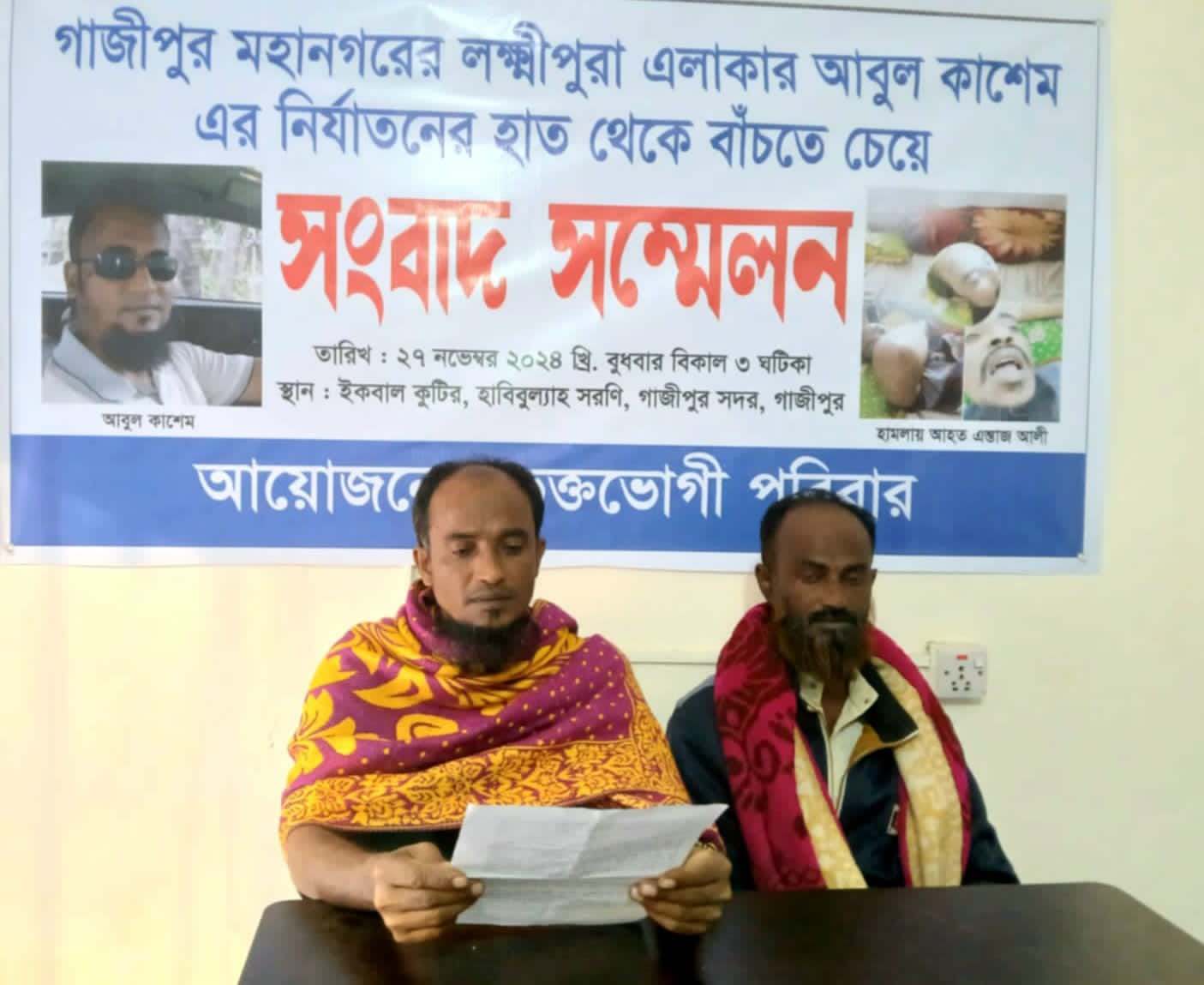 এমতাবস্থায় আবুল কাশেমের ভয়ে আমি হাসপাতাল থেকে এই এলাকা ছেড়ে অন্যত্র চলে যাই, সেখানেও গিয়ে আবুল কাশেম ও তার সহযোগীরা পুনরায় আমাকে প্রাণনাশের হুমকি ধামকি দিতে থাকে। আমি ও আমার পরিবার বর্তমানে চরম নিরাপত্তাহীনতায় আছি। আমি প্রশাসনের নিকট ন্যায়বিচার চাই। এ ঘটনায় ভোক্তভোগী মোঃ এন্তাজ আলীর স্ত্রী মোসাঃ মাফিয়া (৪২) বাদী হয়ে জিএমপি সদর মেট্রোথানায় একটি অভিযোগ দায়ের করেন। অভিযুক্ত আবুল কাশেম গাজীপুর মহানগরীর ২৭নং ওয়ার্ড যুবলীগের সভাপতি প্রার্থী ছিলেন।