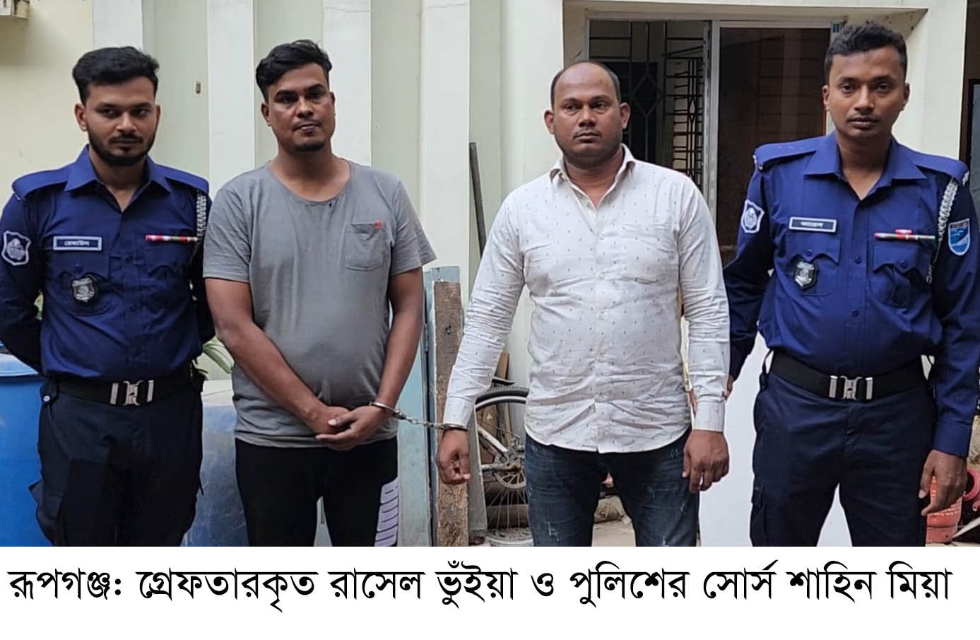 নারায়ণগঞ্জের রূপগঞ্জে উপজেলা ছাত্রদলের সাবেক সহ-সভাপতি রাসেল ভুঁইয়াকে ফাঁসাতে গিয়ে ধর্ষণ মামলায় গ্রেফতার হয়েছে পুলিশের সোর্স শাহীন মিয়া ওরফে সোর্স শাহীন(৩৫)। গতকাল ৩ডিসেম্বর মঙ্গলবার ভোর রাতে উপজেলার তারাবো দক্ষিণপাড়া তার বাড়ী থেকে রাসেল ভুঁইয়াকে গ্রেফতার করার পর তাকে ফাঁসাতে শাহিন মিয়া থানায় গেলে এ ঘটনা ঘটে।
