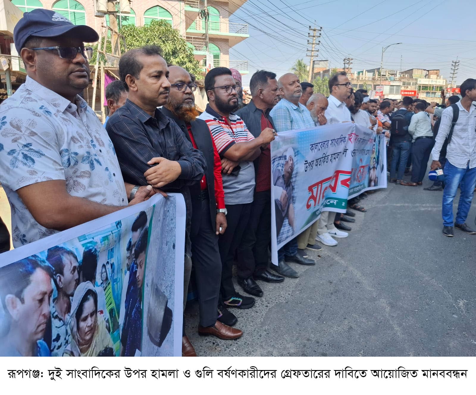দৈনিক নয়া দিগন্তের সাংবাদিক শফিকুল ইসলাম মীর ও দৈনিক কালবেলার সাংবাদিক জাহাঙ্গীর মাহমুদের উপর হামলা, নির্যাতন, গুলি বর্ষণের প্রতিবাদে ও আসামীদের গ্রেফতারের দাবিতে মানববন্ধন ও বিক্ষোভ মিছিল করেছে স্থানীয় সাংবাদিকরা। গতকাল ৩ডিসেম্বর মঙ্গলবার ঢাকা-সিলেট মহাসড়কের ভুলতা এলাকায় এ কর্মসূচি পালন করা হয়। রূপগঞ্জ উপজেলা প্রেসক্লাব, রূপগঞ্জ প্রেসক্লাব, আড়াইহাজার প্রেসক্লাব, সোনারগাঁও প্রেসক্লাবসহ স্থানীয় সাংবাদিকরা এ কর্মসূচিতে অংশ নেন।