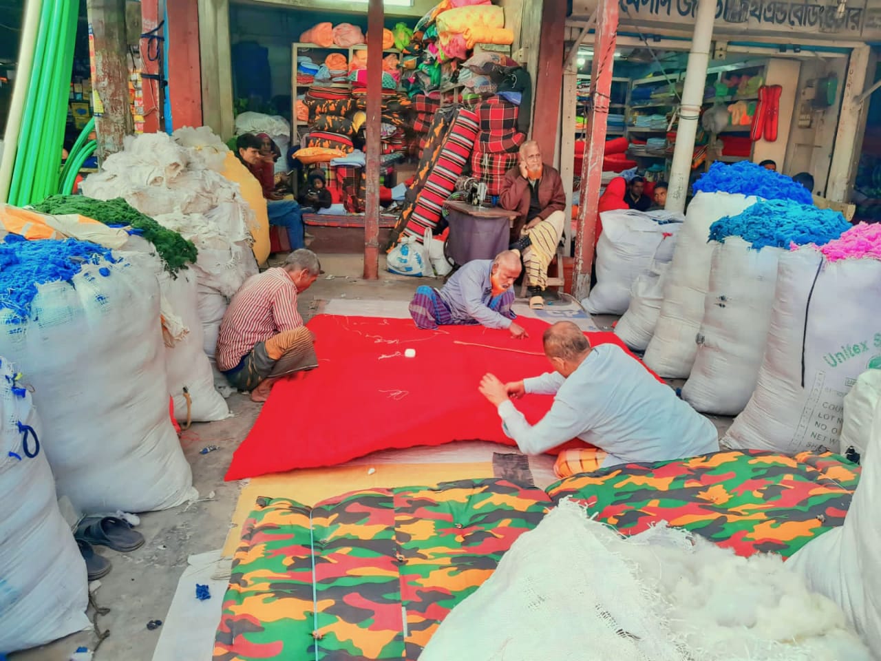 বড়বাড়ী বাজারে লেপ-তোশকের কারিগর