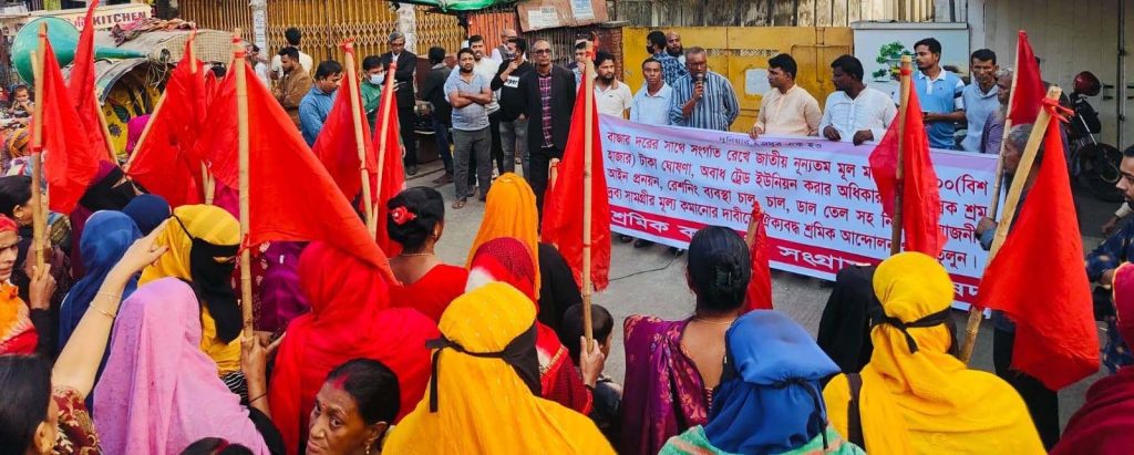 বাজার দরের সাথে সংগতি রেখে জাতীয় নূন্যতম মূল মজুরি ২০ হাজার টাকা ঘোষণা, অবাধ ট্রেড ইউনিয়ন করার অধিকার, শ্রম আইনের ১৮৫ (ক) ধারাসহ শ্রমিক স্বার্থ বিরোধী ধারাসমূহ বাতিল করে গণতান্ত্রিক শ্রম আইন প্রণয়ন, শ্রমিক-কৃষক-জনগণের জন্য রেশনিং ব্যবস্থা চালু, চাল, ডাল, তেলসহ নিত্য প্রয়োজনীয় দ্রব্য সামগ্রীর দাম কমানোর দাবিতে শ্রমিক কর্মচারী সংগ্রাম পরিষদ, চট্টগ্রাম এর উদ্যোগে নিউমার্কেটস্থ দোস্ত বিল্ডিং চত্বরে এক সমাবেশ শ্রমিক কর্মচারী সংগ্রাম পরিষদ এর আহবায়ক আবদুল মোনাফের সভাপতিত্বে ও সদস্য সচিব মোঃ শাহ আলম এর পরিচালনায় অনুষ্ঠিত হয়। সমাবেশে বক্তব্য রাখেন, শ্রমিক কর্মচারী সংগ্রাম পরিষদ এর যুগ্ম আহবায়ক মোঃ মামুন, শ্রমিক দরদী মোঃ জয়নাল আবেদীন, বাংলাদেশ ওএসকে গার্মেন্টস শ্রমিক ফেডারেশন চট্টগ্রাম বিভাগীয় কমিটির সহ-সাধারণ সম্পাদক জয়ন্তী রায়, চট্টগ্রাম জেলা হোটেল রেষ্টুরেন্ট শ্রমিক ইউনিয়ন এর সভাপতি মোঃ রিপন ও সাধারণ সম্পাদক মোঃ সাইফুল ইসলাম, বন্দর স্টাফ শ্রমিক ইউনিয়ন এর কার্যকরী সভাপতি আব্দুর রশিদ সহ প্রমুখ নেতৃবৃন্দ।