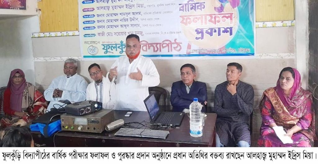 আজ ২৫ ডিসেম্বর বুধবার সকালে নগরীর চান্দগাঁও থানার স্বনামধন্য ফুলকুঁড়ি বিদ্যাপীঠের বার্ষিক পরীক্ষার ফলাফল ও পুরষ্কার প্রদান অনুষ্ঠিত হয়। অনুষ্ঠানে সভাপতিত্ব করেন বাংলাদেশ কিন্ডারগার্টেন এসোসিয়েশন চট্টগ্রাম অঞ্চলের সাধারণ সম্পাদক কাজী মোহাম্মদ সরোয়ার খান মনজু।