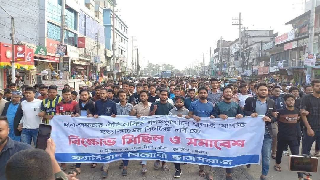 বুধবার (২৫শে ডিসেম্বর) বিকেলে উপজেলার ঢাকা-চট্রগ্রাম মহাসড়কের চৌদ্দগ্রাম বাজারে বিক্ষোভ মিছিল শেষে সংক্ষিপ্ত সমাবেশে বক্তব্য রাখেন কুমিল্লা বিশ^বিদ্যালয়ের মেধাবী ছাত্রনেতা মামুন মজুমদার।