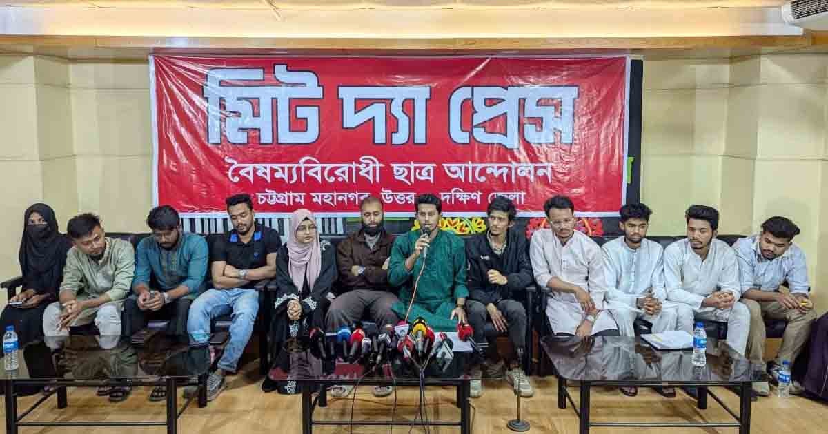 বৈষম্যবিরোধী ছাত্র আন্দোলন নগর কমিটির আহ্বায়ক রিজাউর রহমান। এছাড়াও বক্তব্য রাখেন চট্টগ্রাম মহানগর সদস্য সচিব নিজাম উদ্দিন, মুখ্য সংগঠক তাওসিফ ইমরোজ, মুখপাত্র ফাতেমা খানম লিজা, উত্তর জেলা আহ্বায়ক ইয়াছির আরফিন চৌধুরী, দক্ষিণ জেলার আহ্বায়ক জোবাইর হোসেন, মহানগরের সিনিয়র যুগ্ম সদস্য সচিব রাশেদুল আলম, মহানগর যুগ্ম মুখ্য সংগঠক ফরহাদ বিন হাবিব ইমন, উত্তর ও দক্ষিণ জেলার সদস্য সচিব মো. রইছ উদ্দিন ও তৌহিদুল ইসলাম। এছাড়াও বৈষম্যবিরোধী ছাত্র আন্দোলন চট্টগ্রাম মহানগর, উত্তর জেলা এবং দক্ষিণ জেলার নেতারা উপস্থিত ছিলেন।
