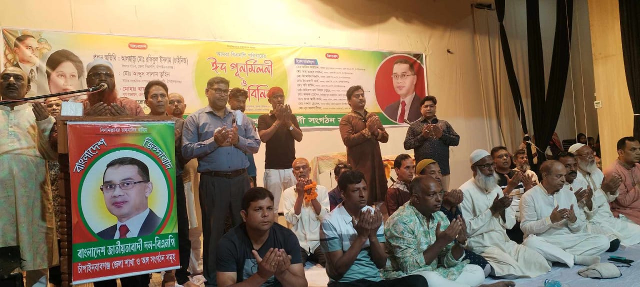 বাংলাদেশ জাতীয়তাবাদী দল (বিএনপি) চাঁপাইনবাবগঞ্জ জেলা শাখার আয়োজনে ঈদ পুনমিলনী ও শুভেচ্ছা বিনিময় এবং ফিলিস্তিনের মুসলমানদের জন্য দোয়া অনুষ্ঠিত হয়েছে।