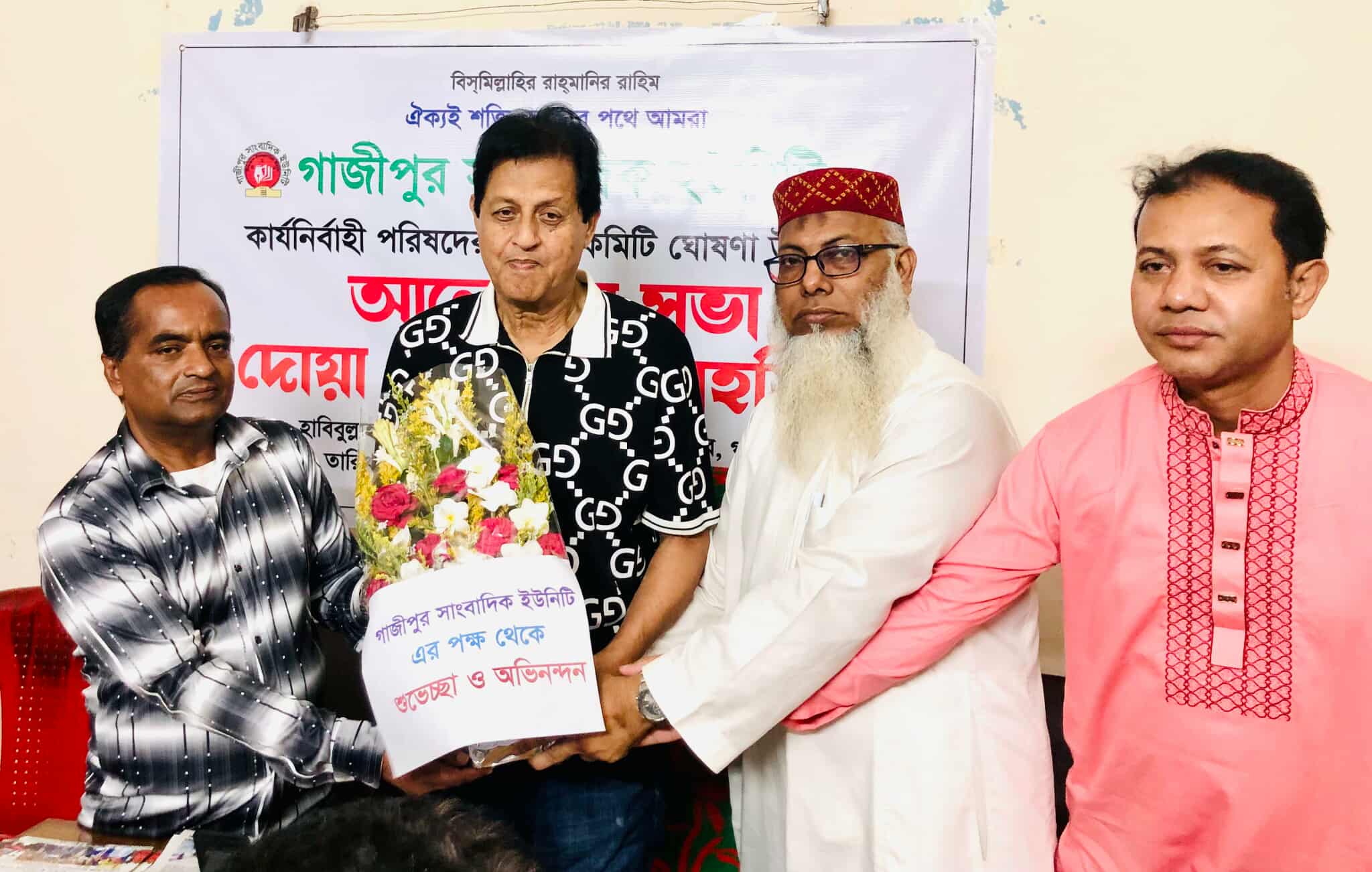আনন্দমুখর পরিবেশে গাজীপুর সাংবাদিক ইউনিটির কার্যনির্বাহী পরিষদের কমিটি গঠন করা হয়েছে। বুধবার ৭ মে ২০২৫ বাদ মাগরিব হাবিবুল্লাহ স্মরণি রোড, ইকবাল কুটির অবস্থিত ইউনিটির কার্যালয়ে এই অনুষ্ঠানের আয়োজন করা হয়। উক্ত কমিটির সভাপতি এম এ ফিরোজ লাভলুর সভাপতিত্বে, সাধারণ সম্পাদক মোঃ হাইউল উদ্দিন খান এর পরিচালনায় এ সময় প্রধান অতিথি হিসেবে দিকনির্দেশনামূলক বক্তব্য রাখেন, গাজীপুর সদর উপজেলার সাবেক চেয়ারম্যান, গাজীপুর মহানগর বিএনপির সাবেক সহ-সভাপতি আফজাল হোসেন কায়সার। আমন্ত্রিত অতিথি হিসেবে বক্তব্য রাখেন, আনন্দ টিভির গাজীপুর জেলা প্রতিনিধি, দৈনিক যুগান্তর এর কাপাসিয়া প্রতিনিধি মোঃ খোরশেদ আলম, এ সময় স্বাগত বক্তব্য রাখেন, দৈনিক কণ্ঠবাণী পত্রিকার সম্পাদক ও প্রকাশক এম জে আলম। উক্ত কমিটির অন্যান্য সদস্যরা হলেন, ১।সহ-সভাপতি, মোঃ আবুসালেক ভূইয়া, ২। সহ-সভাপতি, জাহিদুর রহমান বকুল,৩।সহ-সভাপতি- ডাঃ মোঃ বাবুল খান, ৪।যুগ্ম-সাধারণ সম্পাদক, মুহাম্মদ আতিকুর রহমান ৫।সাংগঠনিক সম্পাদক-মোঃ নাসির উদ্দিন, ৬।অর্থ সম্পাদক-মোঃ শরীফ হোসেন শামীম,, ৭। দপ্তর সম্পাদক -মোঃ সারওয়ার আলম,৮। সাহিত্য ও সাংস্কৃতিক সম্পাদক - মোঃ জিল্লুর রহমান, ৯। প্রচার ও প্রকাশনা সম্পাদক - মোঃ কাজল মিয়া, সদস্য -১। মোঃ মোবারক হোসেন রনি, সদস্য -২। মোঃ আব্দুল বারি, সদস্য -৩। মোঃ আব্দুল আলী।উক্ত কার্যনির্বাহী কমিটি,, দুই বছরের জন্য বহাল থাকিবে।আলোচনা সভার পূর্বে, গাজীপুর সাংবাদিক ইউনিটি'র পক্ষ থেকে ফুলের তোড়া দিয়ে স্বাগত জানানো হয়,সাবেক গাজীপুর সদর উপজেলা চেয়ারম্যান,অনুষ্ঠানের প্রধান অতিথি আফজাল হোসেন কায়সার'কে।