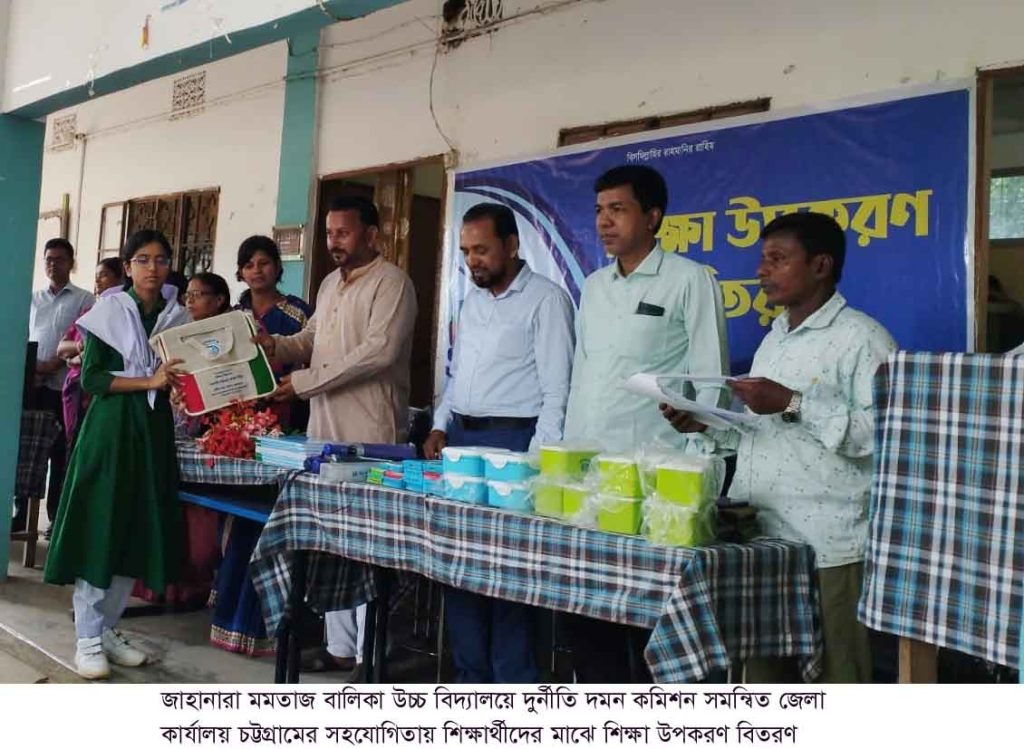 জাহানারা মমতাজ বালিকা বিদ্যালয়ে দুর্নীতি দমন কমিশন শিক্ষা উপকরণ বিতরণ।