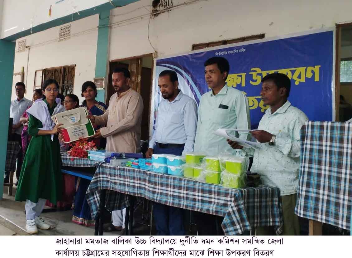 ফটিকছড়ির জাফতনগর ইউনিয়নের ফতেপুরস্থ জাহানারা মমতাজ বালিকা উচ্চ বিদ্যালয়ে শিক্ষার্থীদের মাঝে শিক্ষা উপকরণ বিতরণ করা হয়। অদ্য সোমবার সকালে দুর্নীতি দমন কমিশন সমন্বিত জেলা কার্যালয় চট্টগ্রামের এর সহযোগিতায় ও ফটিকছড়ি দুর্নীতি প্রতিরোধ কমিটির উদ্যোগে উক্ত অনুষ্ঠানে সভাপতিত্ব করেন বিদ্যালয়ের প্রধান শিক্ষক ও ফটিকছড়ি দুর্নীতি প্রতিরোধ কমিটির সাধারণ সম্পাদক পল্লবী খাস্তগীর। প্রধান অতিথি ছিলেন, জাফতনগর ইউপি চেয়ারম্যান আলহাজ্ব জিয়াউদ্দিন জিয়া।অতিথি ছিলেন, সালাউদ্দিন জিকু, ইউসুফ আরাফাত।উপস্থিত ছিলেন, সহকারী প্রধান শিক্ষক মুজিবুর রহমান, সিনিয়র শিক্ষক বাবু নিপু বড়ুয়া, মিসেস সেবিকা বড়ুয়া, ফরিদ উজ্জামান, প্রিয়াঙ্কা সুশীল, শাহজালাল, উম্পি বড়ুয়া প্রমূখ। অনুষ্ঠান সঞ্চালনা করেন বিকাশ কান্তি রায়।বক্তারা বলেন,