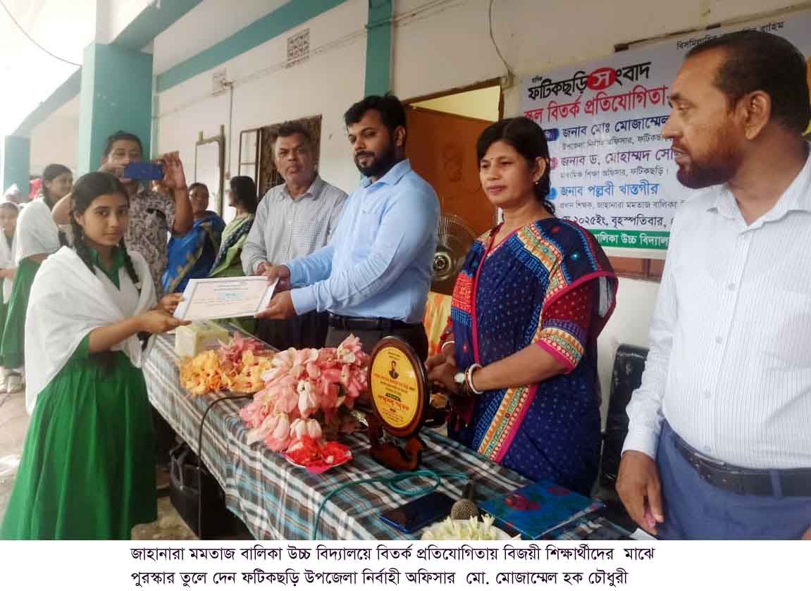 চট্টগ্রামের ফটিকছড়ির জাফতনগর ইউনিয়নের ফতেপুরস্থ জাহানারা মমতাজ বালিকা উচ্চ বিদ্যালয়ে দিনব্যাপী বিতর্ক প্রতিযোগিতা, ফল ও পিঠা উৎসব সম্পন্ন হয়েছে। ২২ মে বৃহস্পতিবার সকালে অনুষ্ঠানের উদ্বোধন করেন ফটিকছড়ি উপজেলা নির্বাহী অফিসার (ইউএনও) ও বিদ্যালয়ের সভাপতি মো. মোজাম্মেল হক চৌধুরী। তিনি বলেন, বিতর্ক প্রতিযোগিতা হলো শিক্ষামূলক কার্যক্রম যেখানে শিক্ষার্থীরা নির্দিষ্ট কোনো বিষয়ে তাদের মতামত যুক্তি ও তথ্যের ভিত্তিতে উপস্থাপন করে।