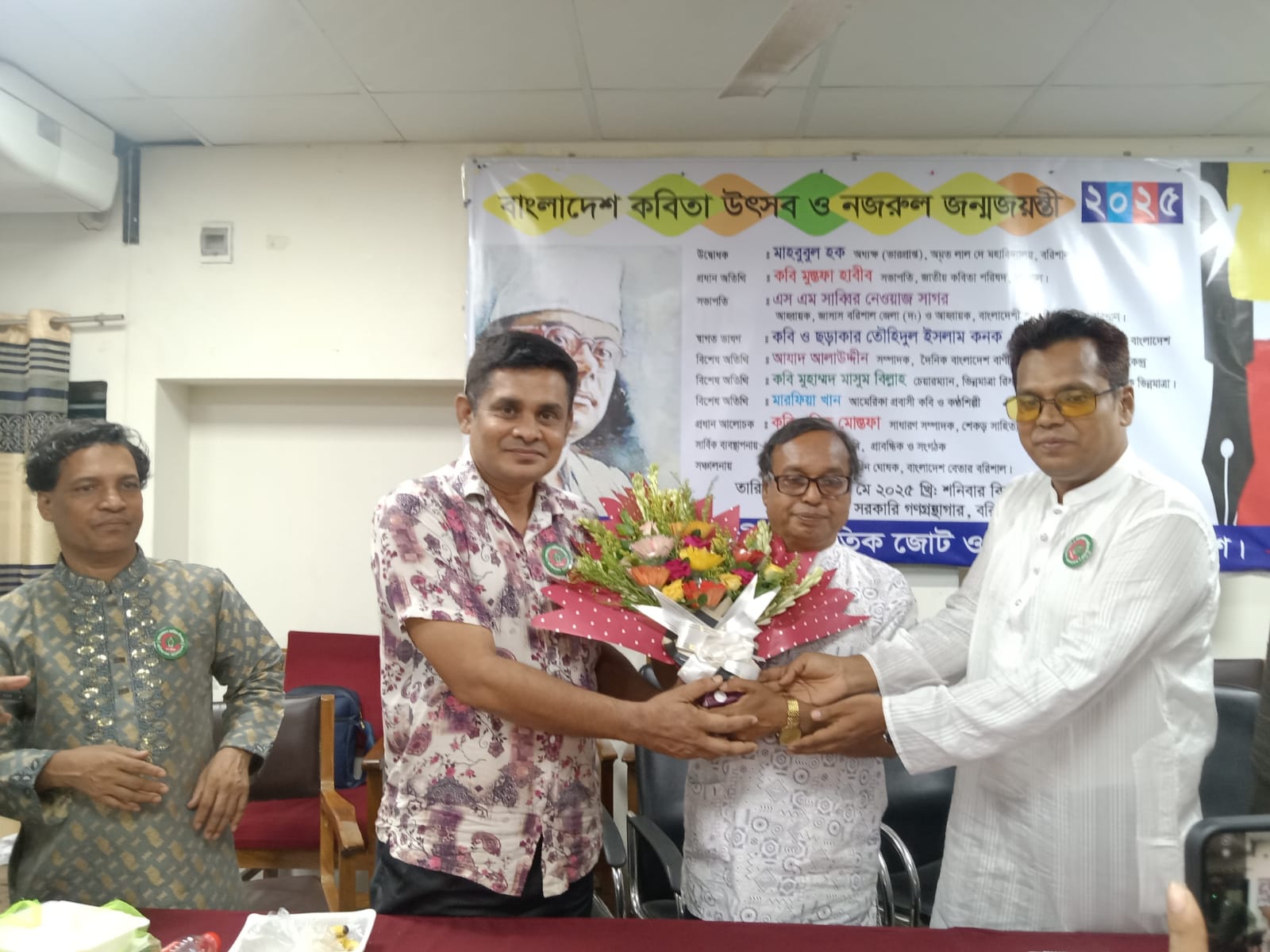 প্রেম দ্রোহ সাম্য ও মানবতার জাতীয় কবি কাজী নজরুল ইসলামকে জন্মজয়ন্তীর অনবদ্য শুভেচ্ছা জানিয়ে প্রাচ্যের ভেনিস বরিশালে অনুষ্ঠিত হয়েছে বাংলাদেশ কবিতা উৎসব ২০২৫ ।